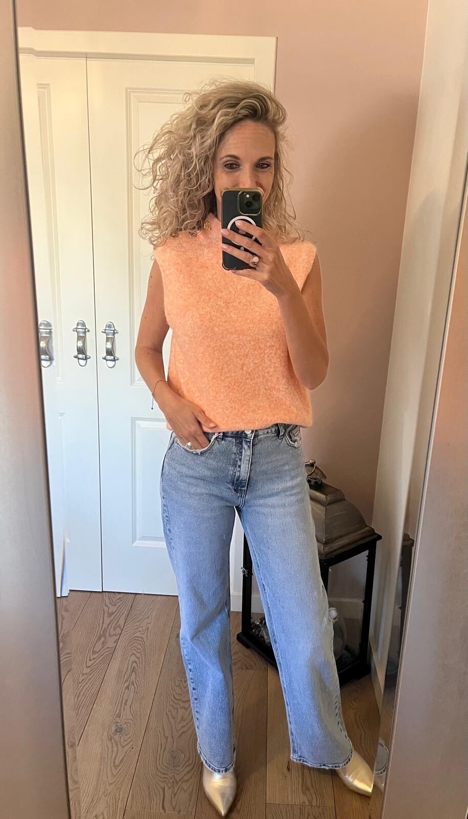 Deze fijne jeans van het merk Folyrose draagt heerlijk door de stretch. Het model zit tussen een mid en high waist in en valt goed op maat. Ons model is 1.73 cm
