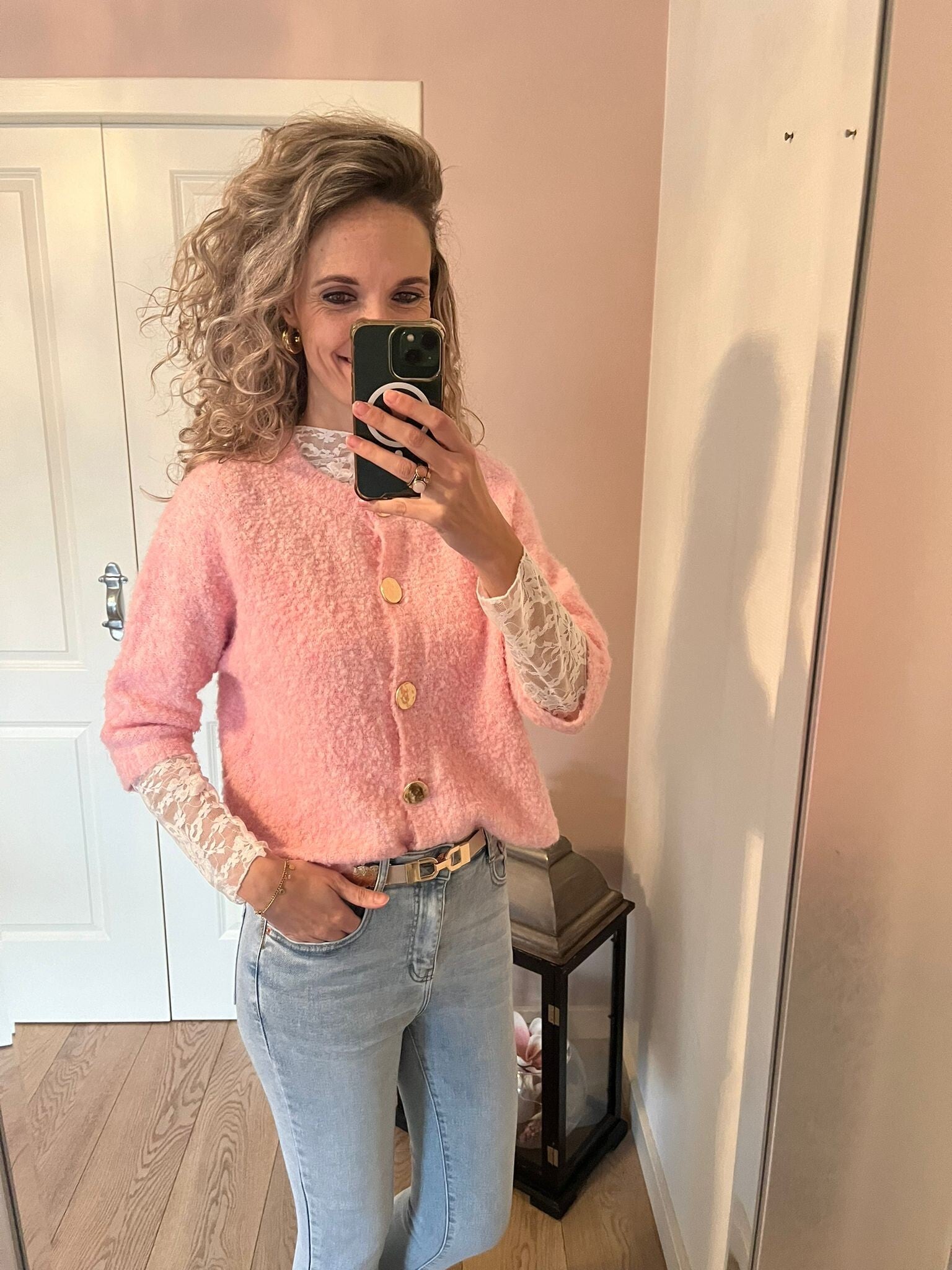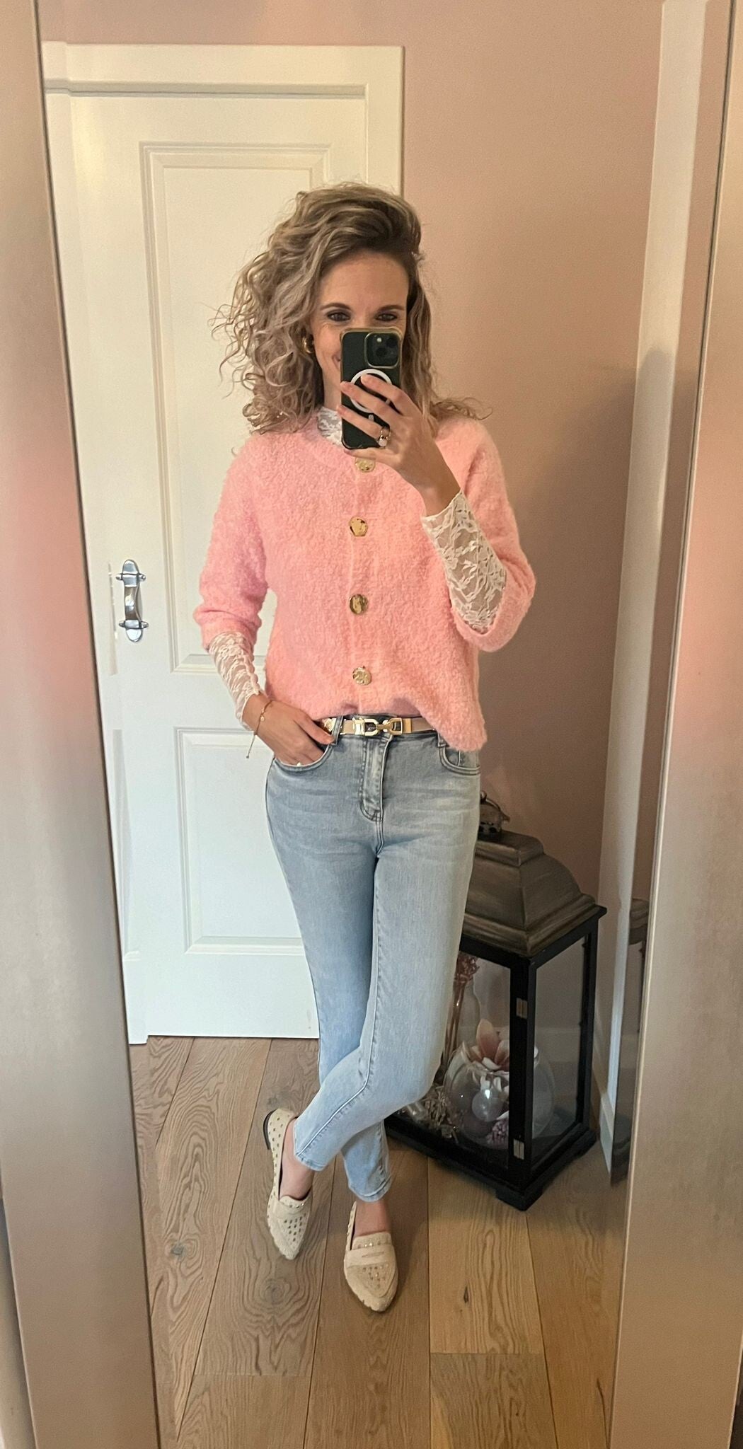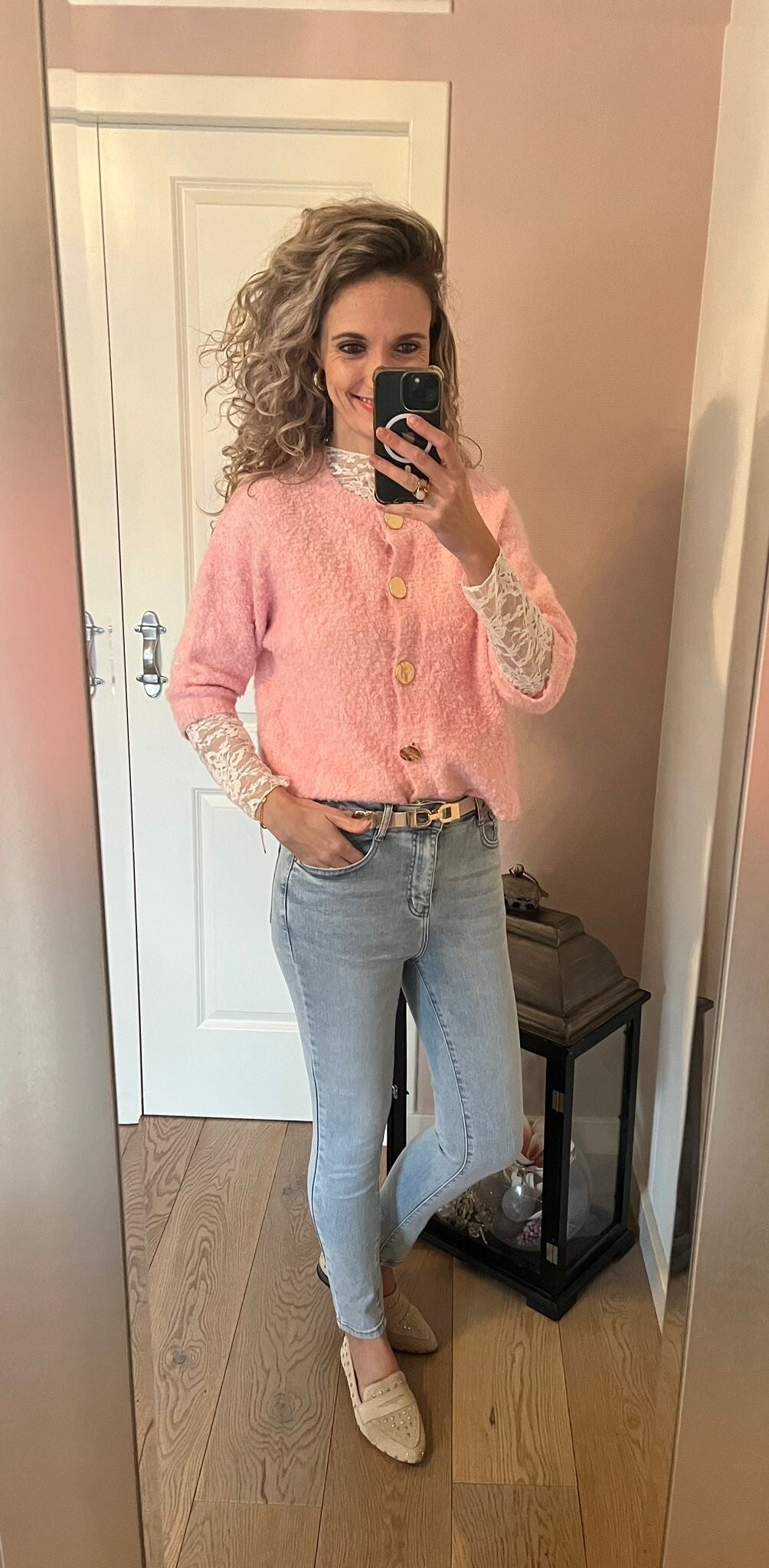 Deze fijne jeans van het merk Folyrose draagt heerlijk door de stretch. Het model zit tussen een mid en high waist in en valt goed op maat. Ons model is 1.73 cm