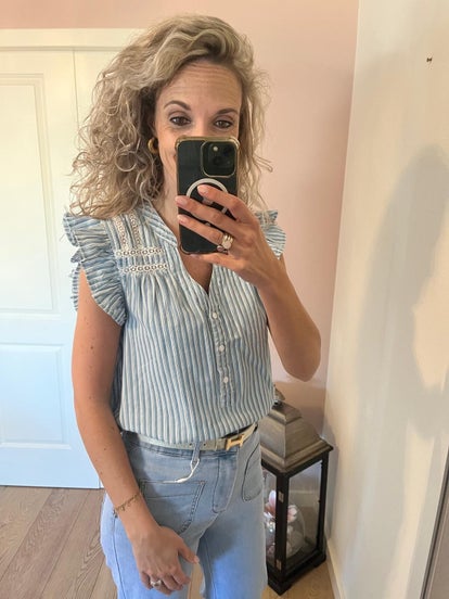 Hoe lief is dit blousje. En doordat het van katoen is ook heerlijk in dragen. Ons model draagt haar eigen maat