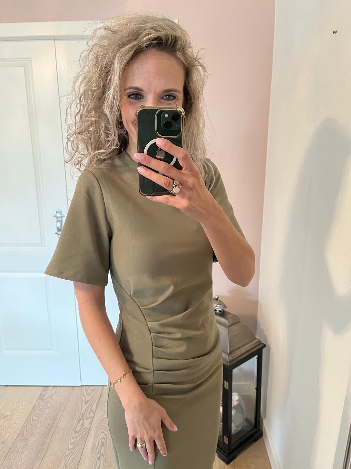 Deze fijne soort jogg jurk met mooie split is heerlijk in dragen door het materiaal. De jurk valt op maat