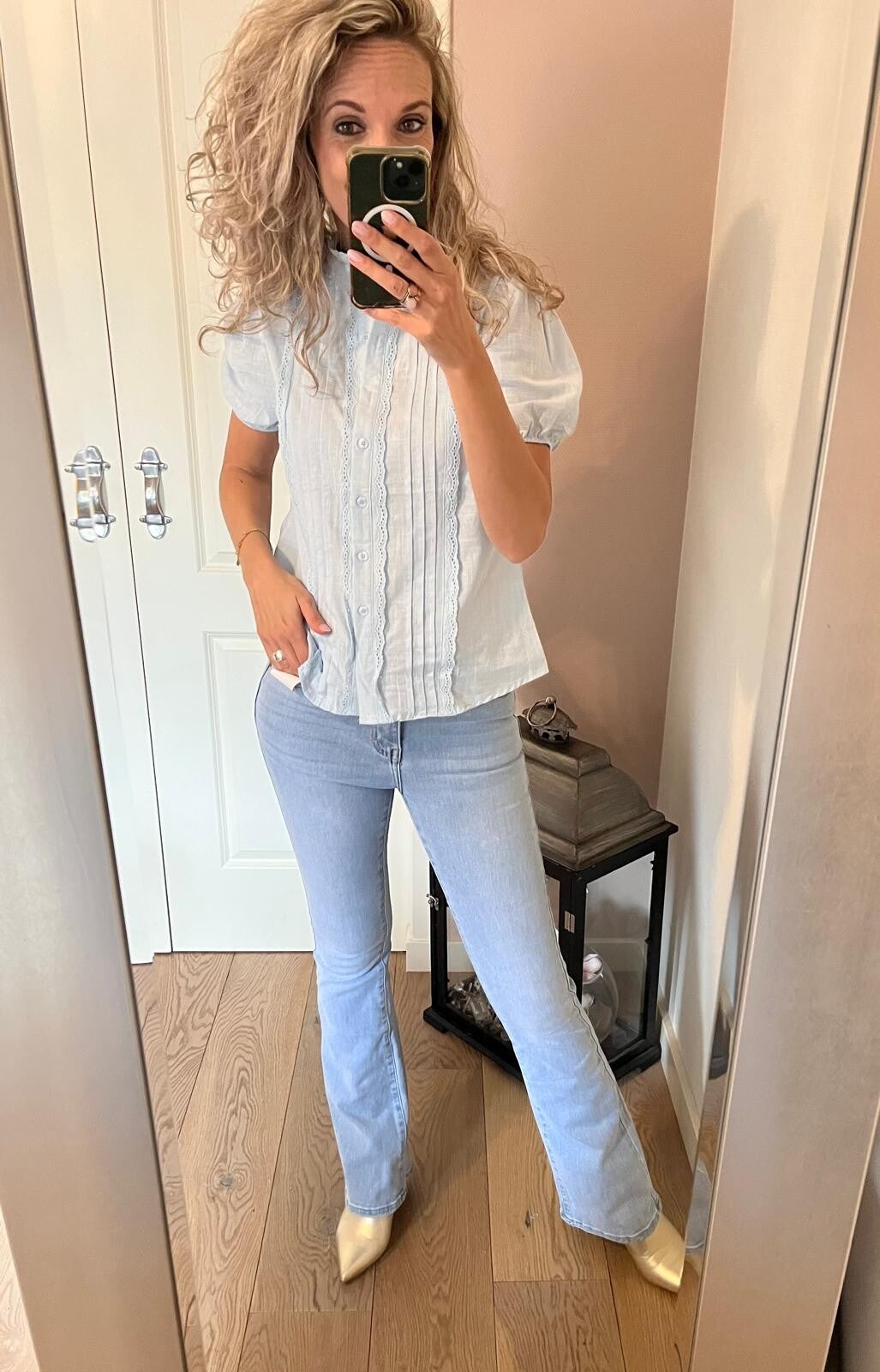 Deze fijne Flared jeans zit tussen een mid waist en high waist in. Valt goed op maat en bevat stretch.