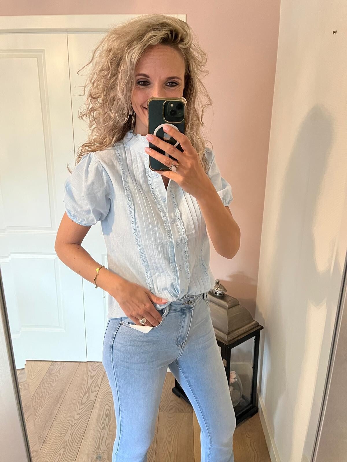 Deze leuke blouse gaat in maten en valt op maat