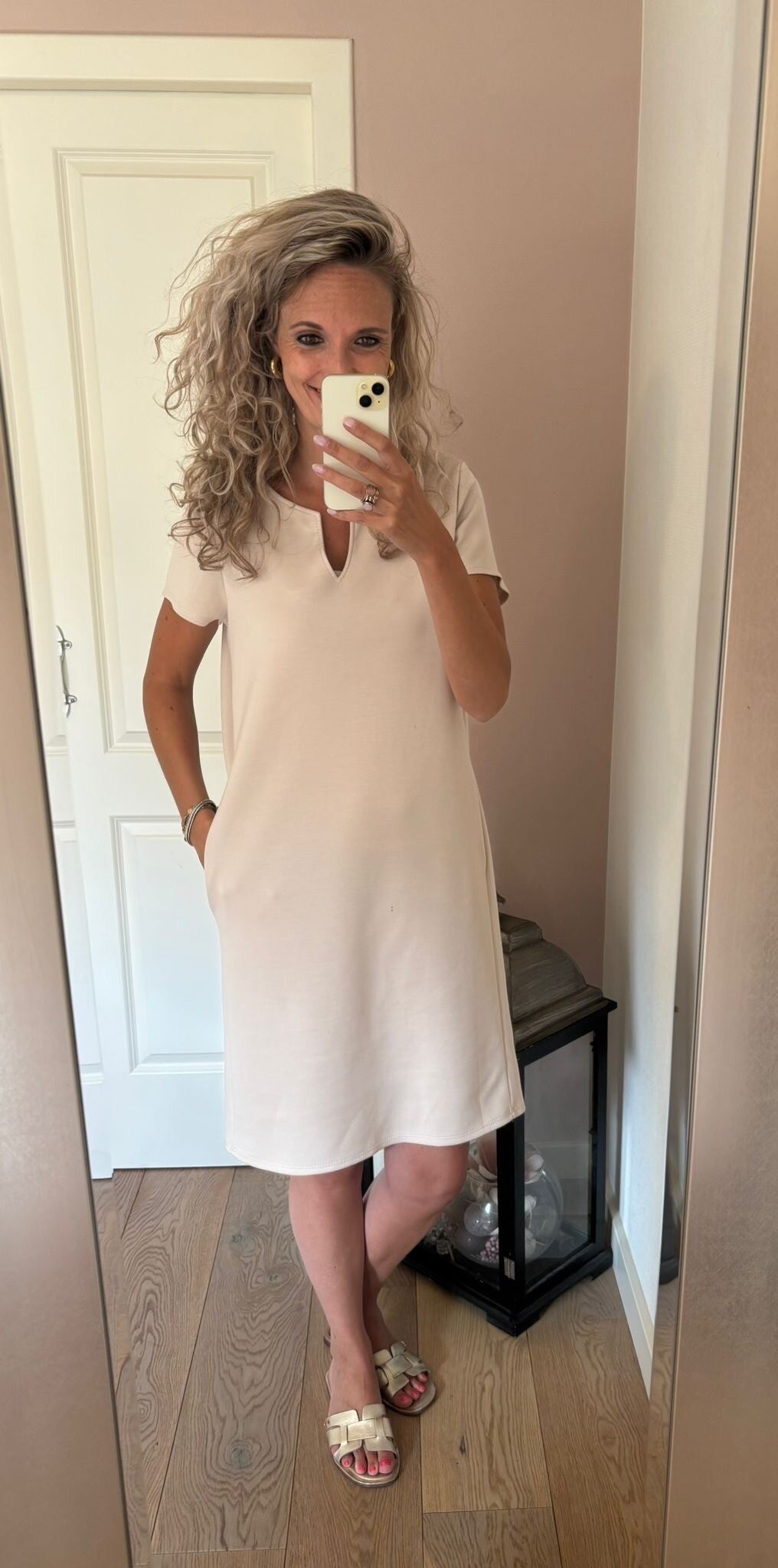 Deze heerlijke zachte jurk is fijn in dragen door het materiaal en heeft aan beide kanten zakken. Mooi ook qua lengte. De jurk valt op maat. • 50% polyester