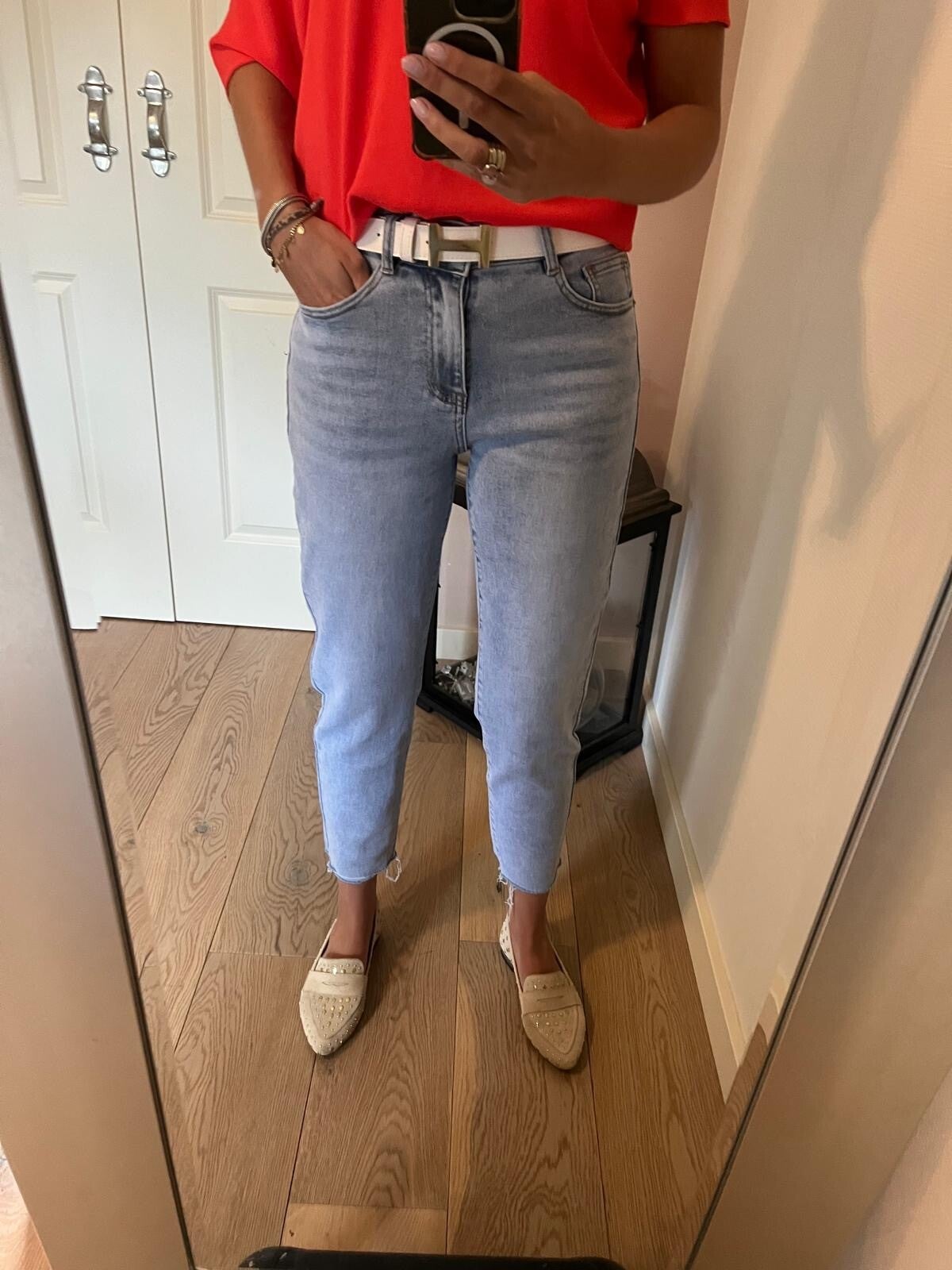 Advies: wil je de jeans strakker hebben zitten dan kan je een maat kleiner nemen.