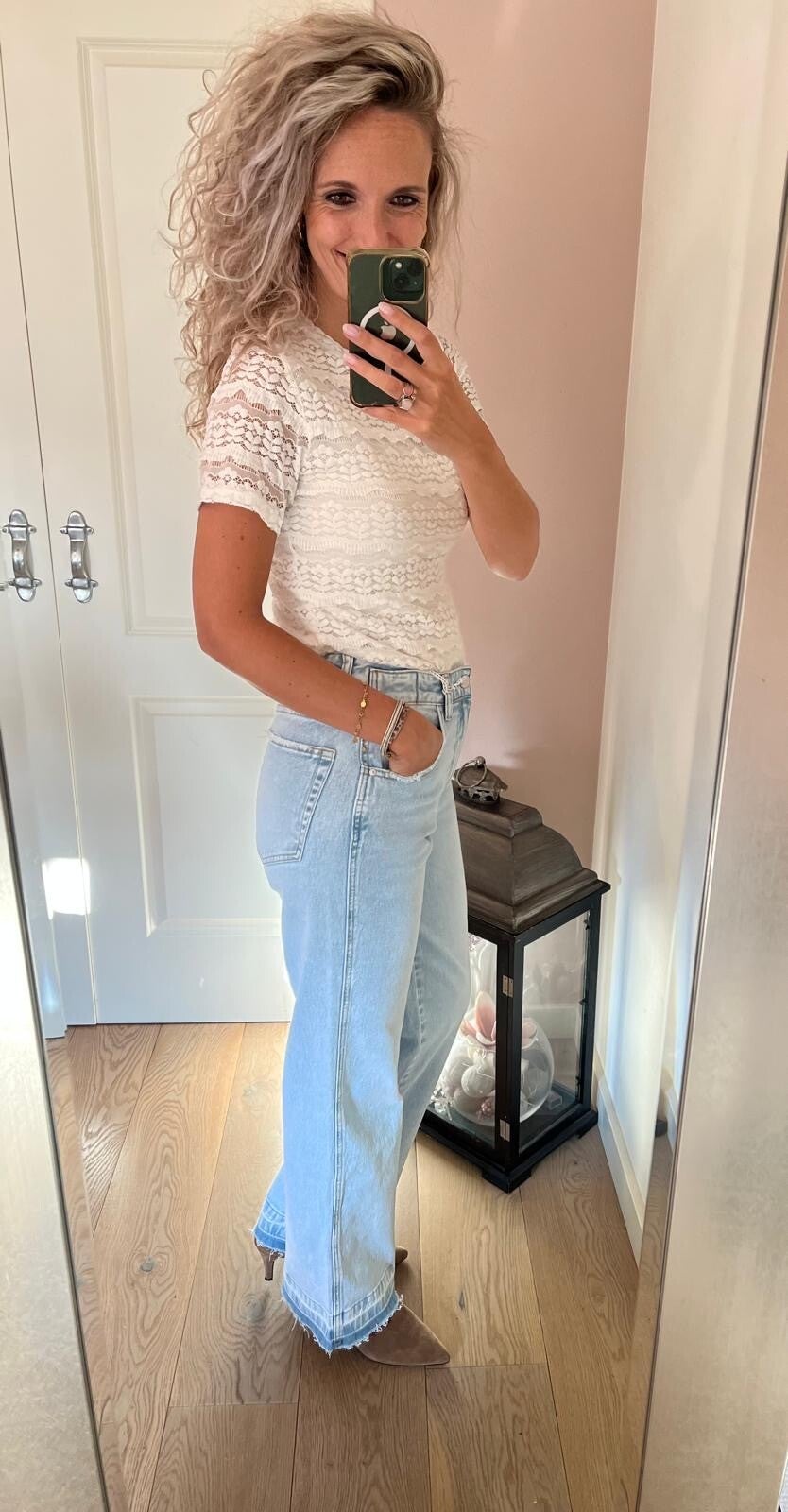 Hoe gaaf is deze jeans. Draagt heerlijk en valt op maat. Ons model is 1.73 cm