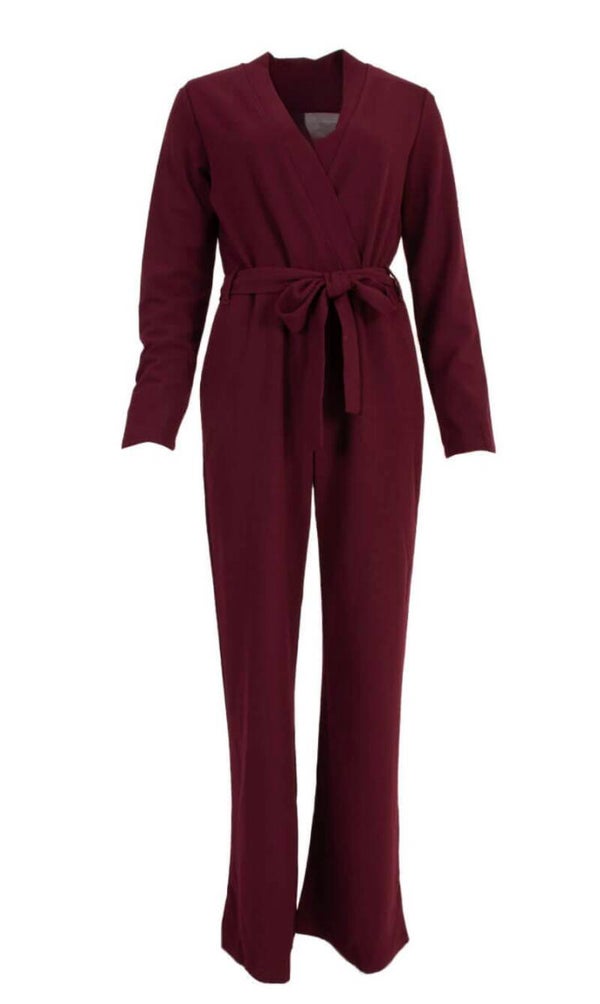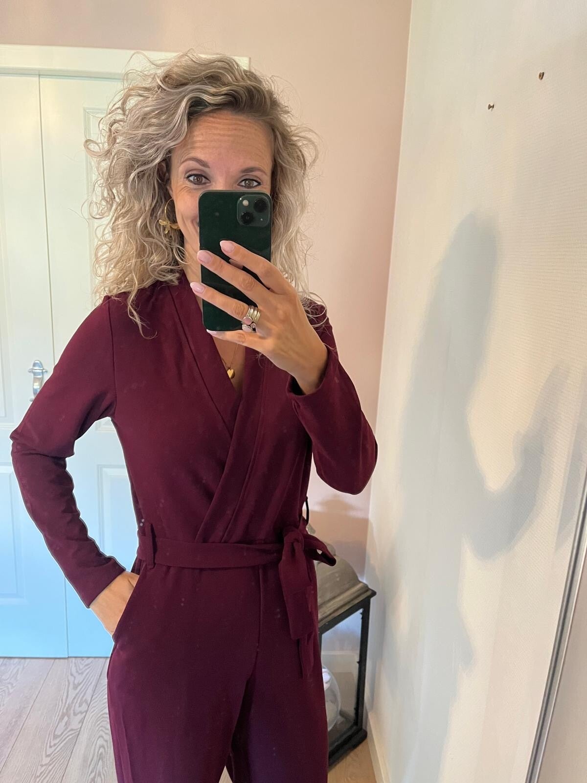 Deze mooie jumpsuit wordt geleverd met bijpassend ceintuur. Deze kan voor de afwisseling er ook uit worden gelaten en een riem erbij worden gedragen. De jumpsuit gaat in maten en valt op maat. Ons model is 1.73 cm