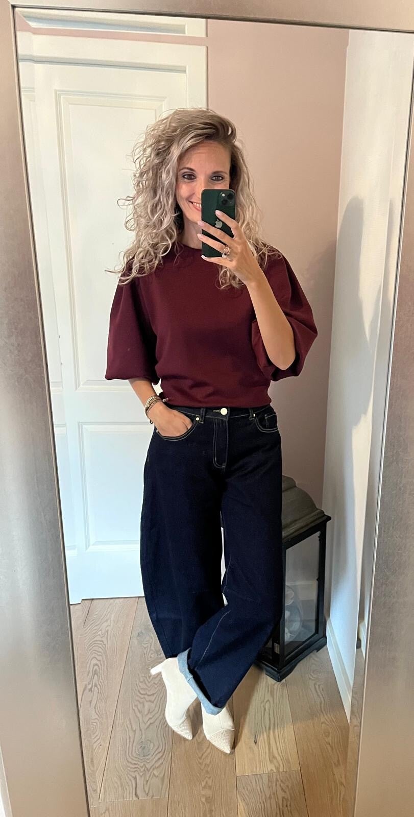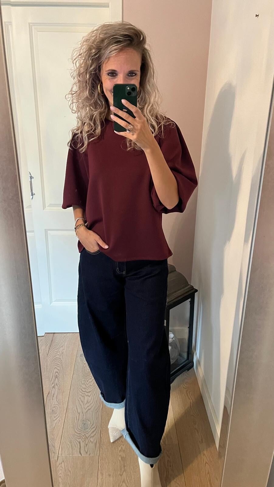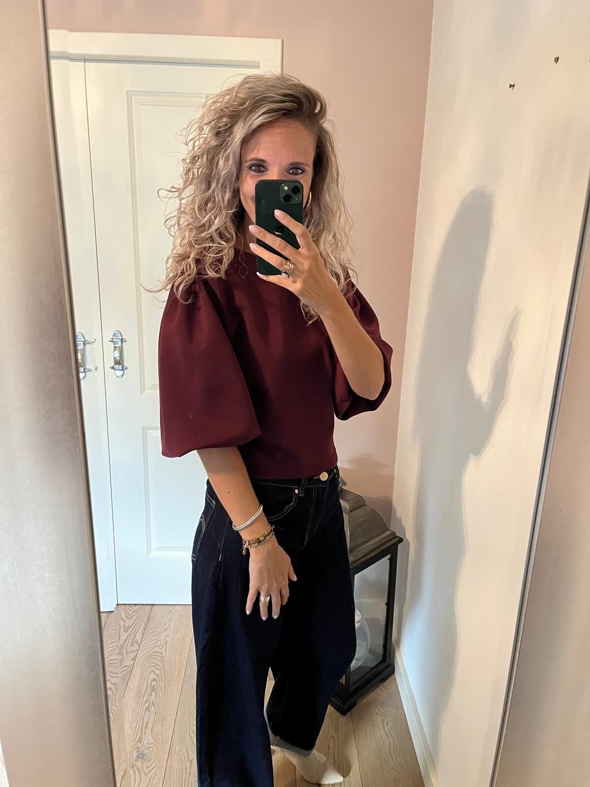 Deze mooie top met ballon mouw is gaaf op een jeans maar kan ook zeker netjes worden gedragen op een pantalon.