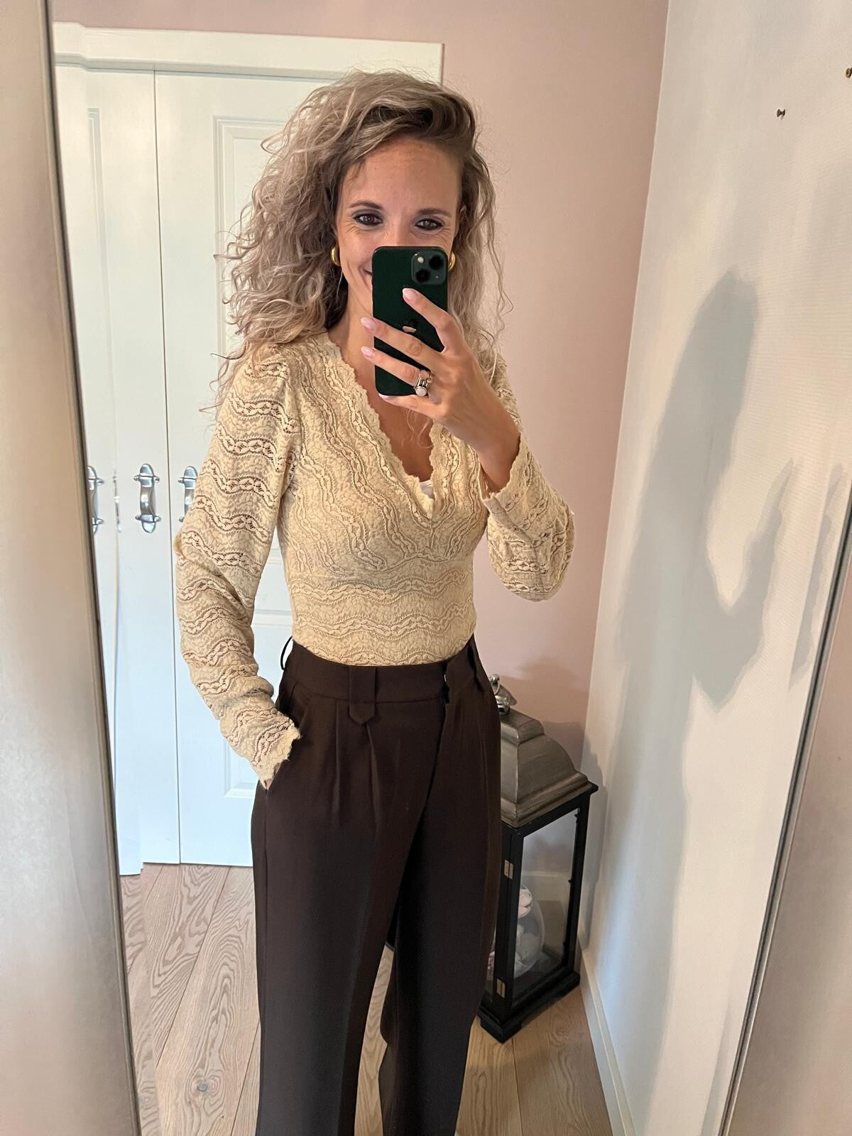 Deze trend gaan we veel zien dit najaar! De balloon jeans/barrel fit. Super gaaf model met een top pasvorm en hele toffe donkere jeans wassing. Ons model heeft de jeans zelf een keer omgeslagen, dit hoeft niet. De jeans van Queen Hearts valt goed op maat. Ons model draagt haar eigen maat, maat S