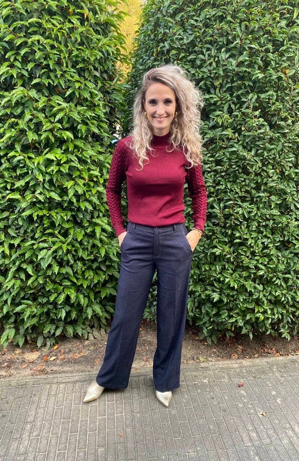 Hoe gaaf is deze top met subtiel lurex draadje. En dat in die mooie kleur Bordeaux. De top gaat in maten en valt op maat