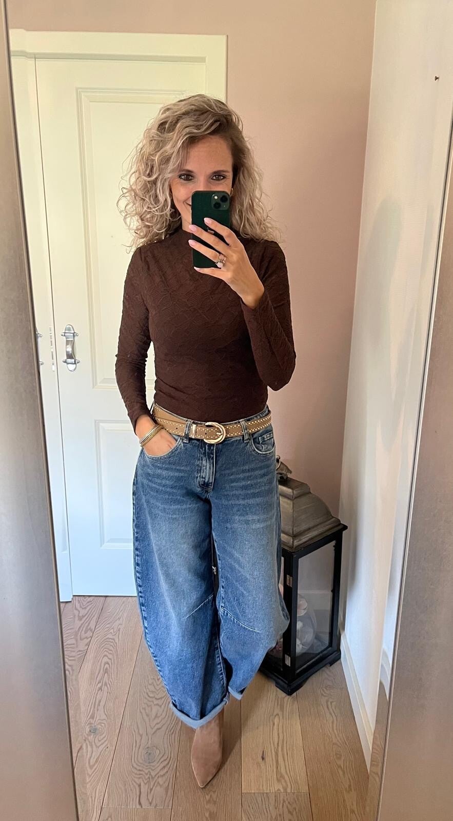 De balloon jeans valt goed op maat en is mid waist, een balloon leg fit en lichte stretch. Sluit mooi aan in de taille, zit als gegoten.