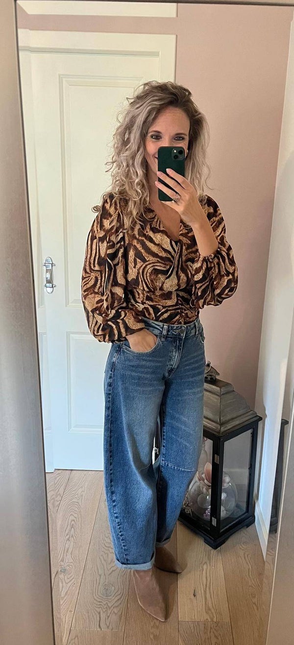 Deze mooie blouse heeft elastiek in de rug waardoor het top draagt!
