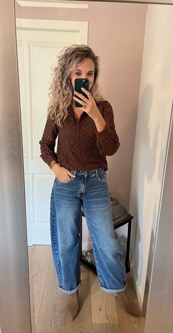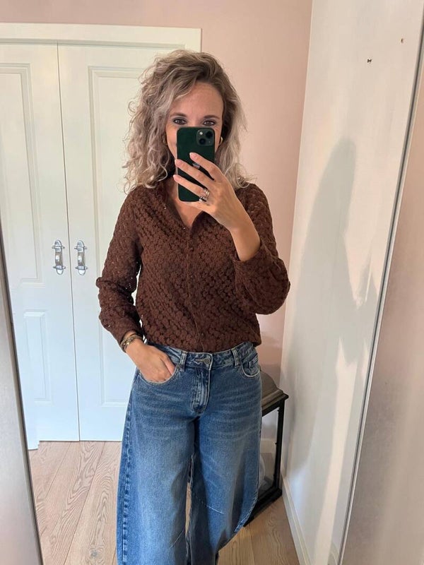 Deze blouse gaat in maten en valt op maat, ons model draagt maat S/M