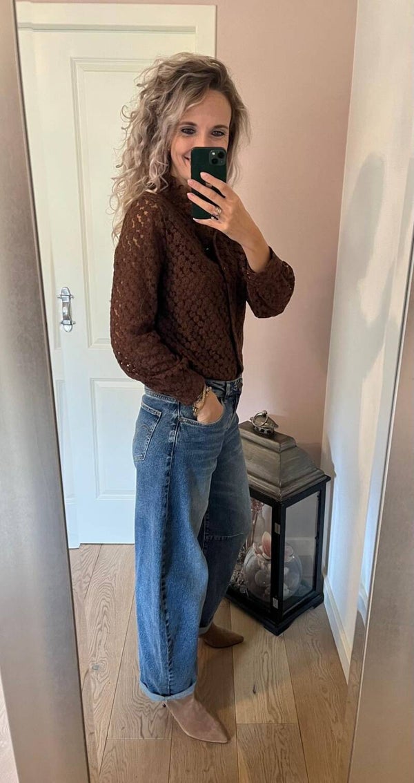 Hoe leuk is deze blouse gemaakt. Mooie kleine bloemetjes uitgewerkt in een blouse.