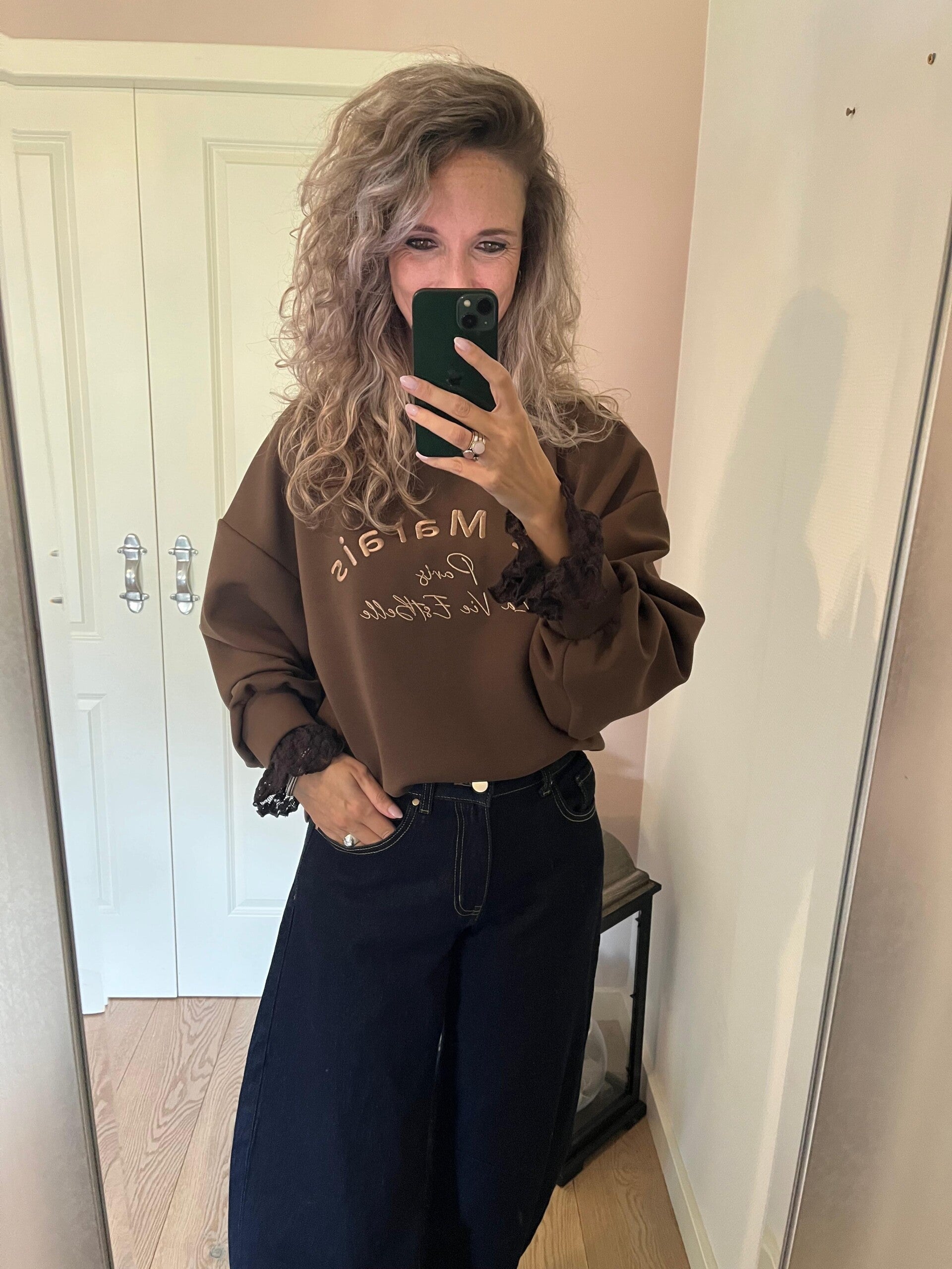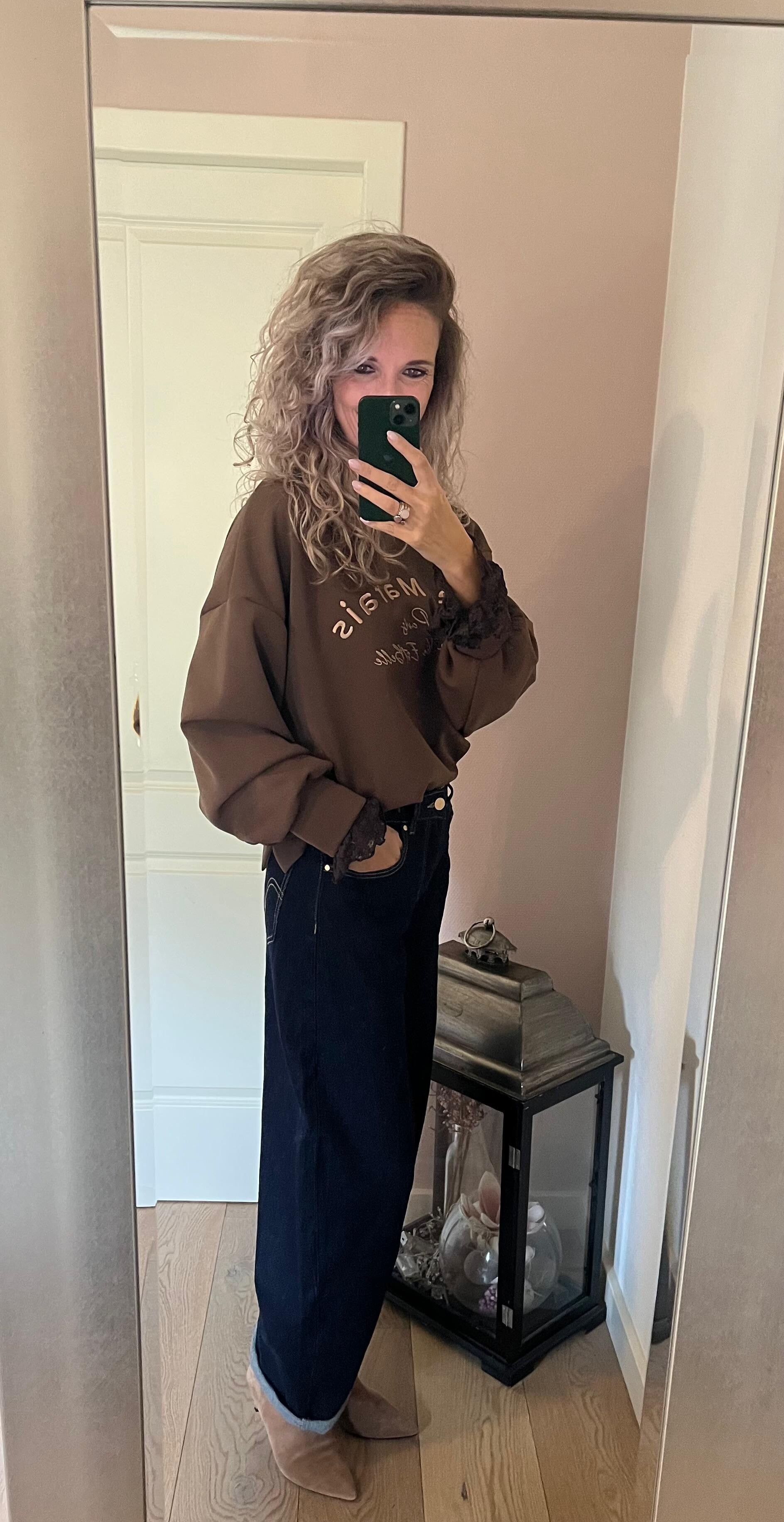 Deze trend gaan we veel zien dit najaar! De balloon jeans/barrel fit. Super gaaf model met een top pasvorm en hele toffe donkere jeans wassing. Ons model heeft de jeans zelf een keer omgeslagen, dit hoeft niet. De jeans van Queen Hearts valt goed op maat. Ons model draagt haar eigen maat, maat S
