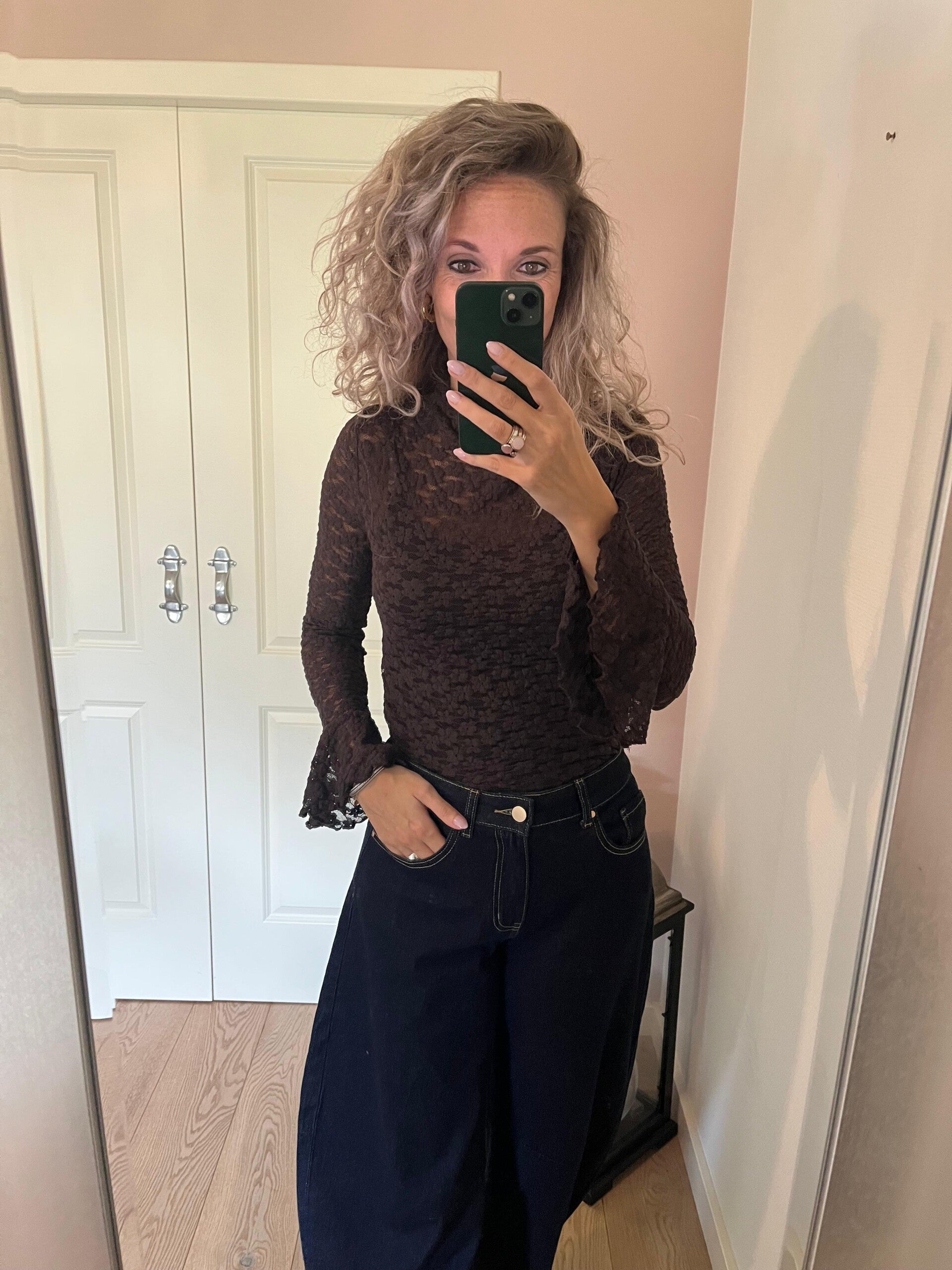 Deze trend gaan we veel zien dit najaar! De balloon jeans/barrel fit. Super gaaf model met een top pasvorm en hele toffe donkere jeans wassing. Ons model heeft de jeans zelf een keer omgeslagen, dit hoeft niet. De jeans van Queen Hearts valt goed op maat. Ons model draagt haar eigen maat, maat S