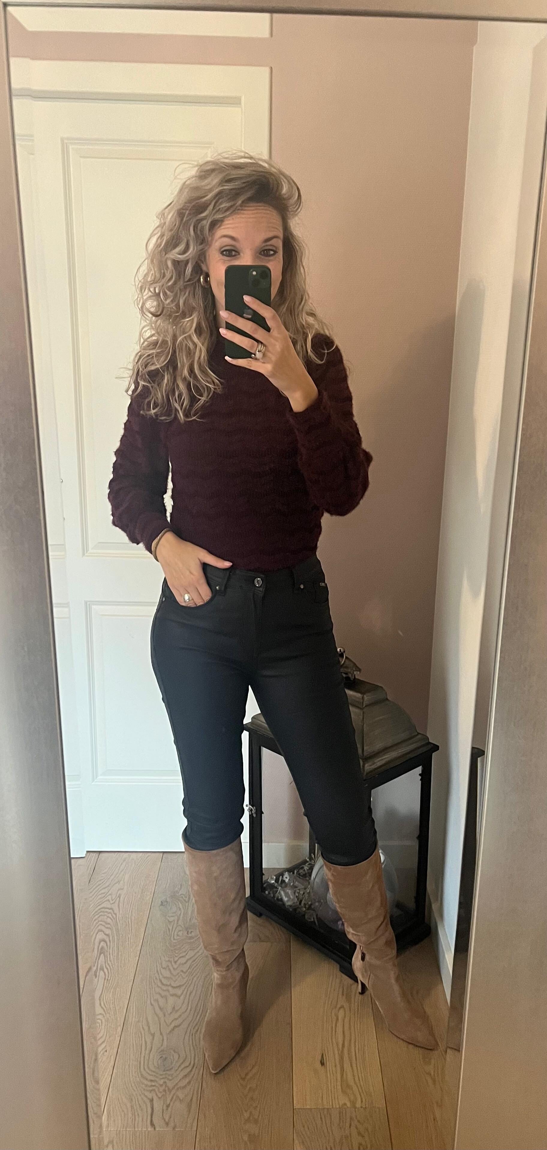 Hoe gaaf is dit shortje. Leather look, twee steekzakken, elastiek in de taille. Gaaf met een ruime sweater maar ook zeker om netjes te dragen. Ons model draagt haar eigen maat.