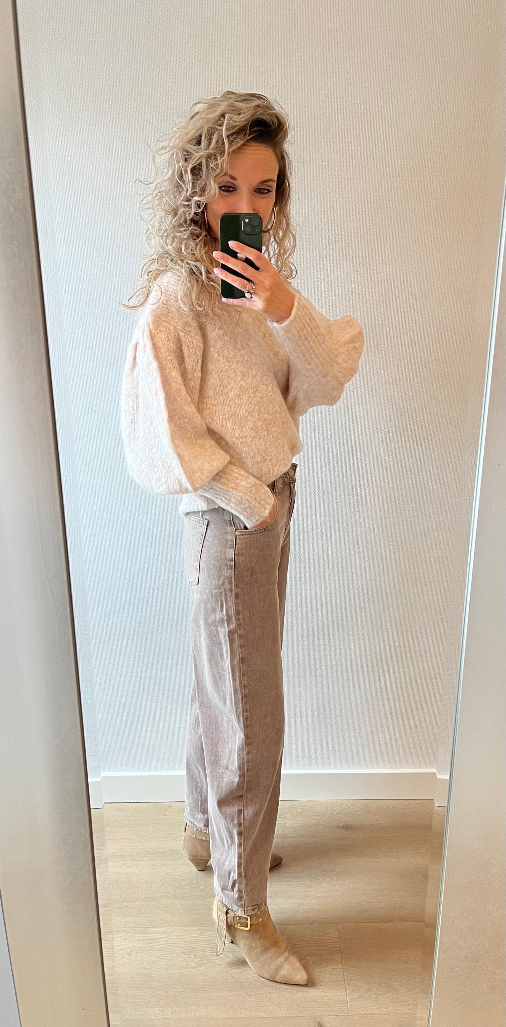 Hoe leuk deze trui met ballonmouwen. Deze trui gaat in de maten S/M M/L