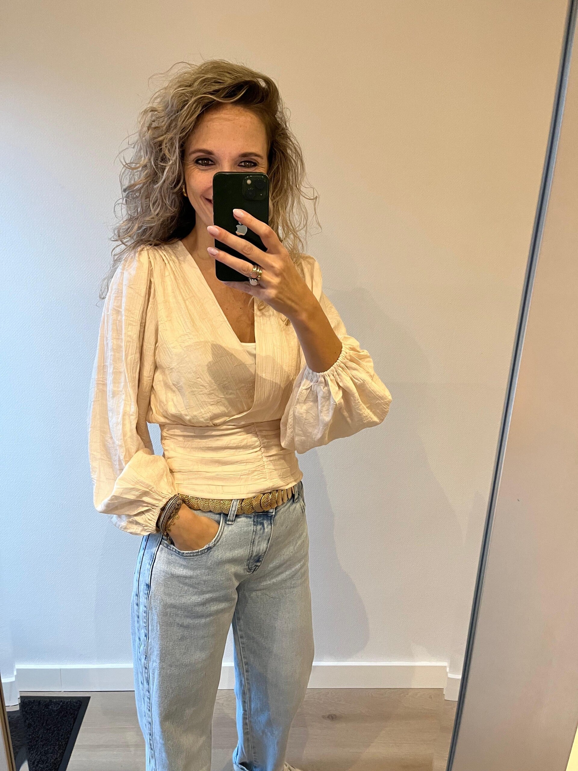 Deze mooie blouse heeft elastiek in de rug waardoor het top draagt!