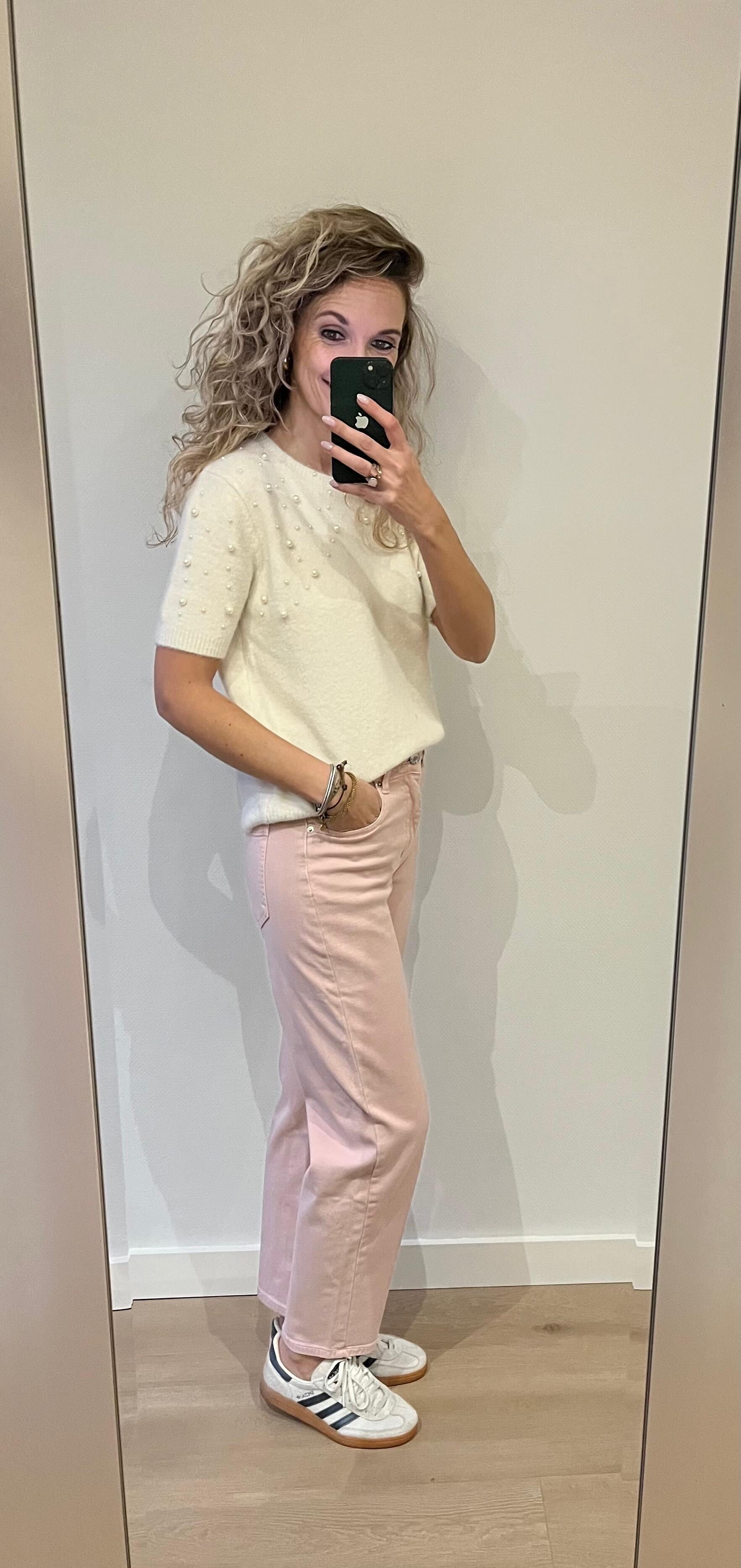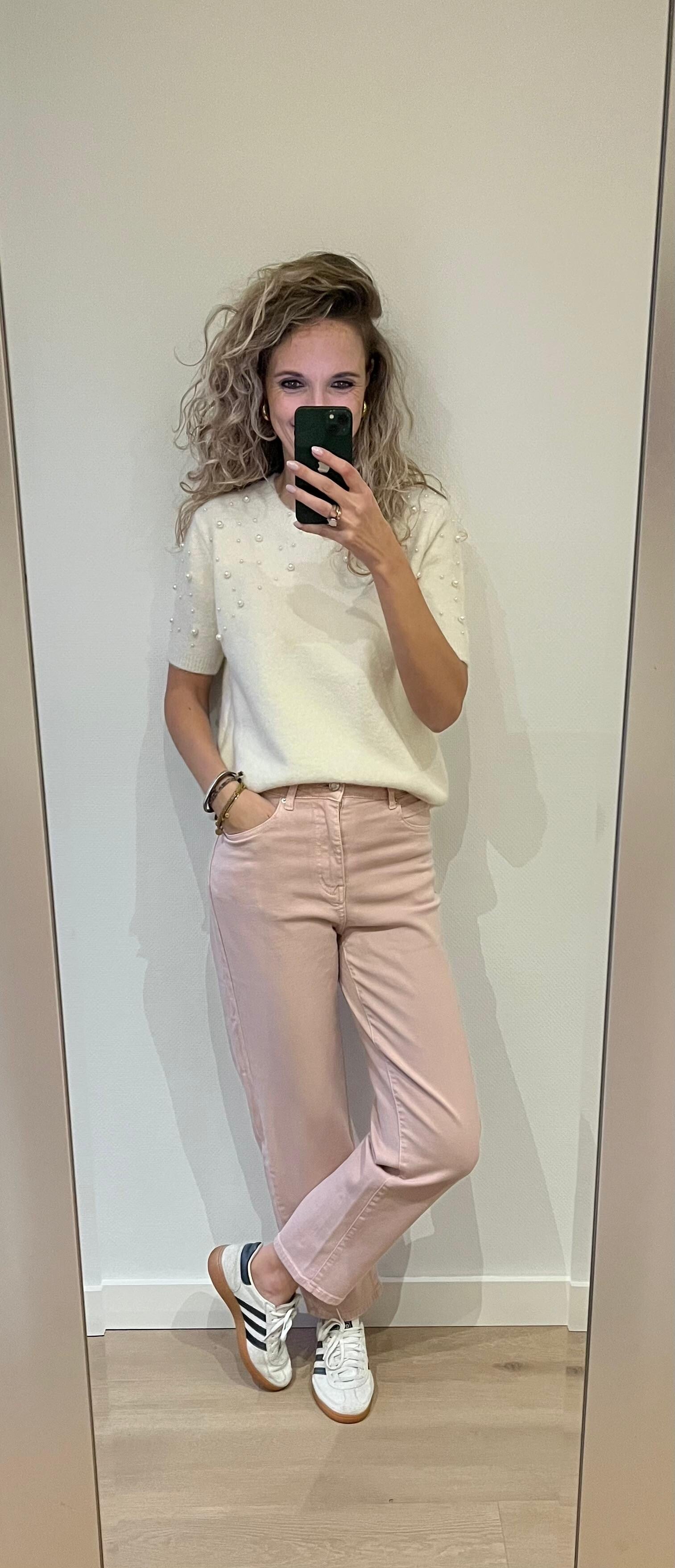 Dit fijne zachte truitje is leuk om zo te dragen of met een mooie kanten top eronder. En kijk eens hoe mooi deze is afgewerkt.