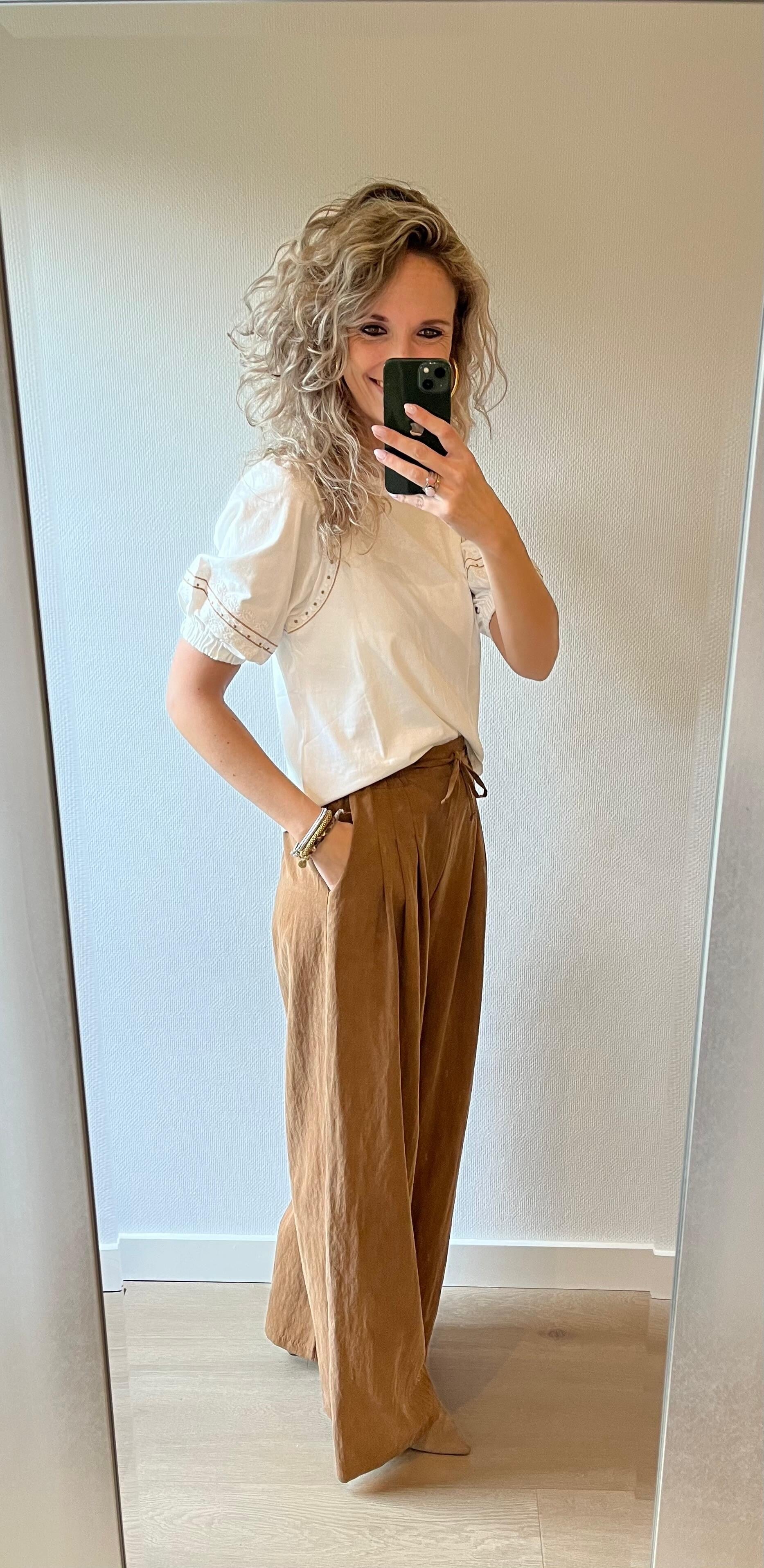 Deze mooie uitgewerkte lichte top gaat in maten en valt op maat