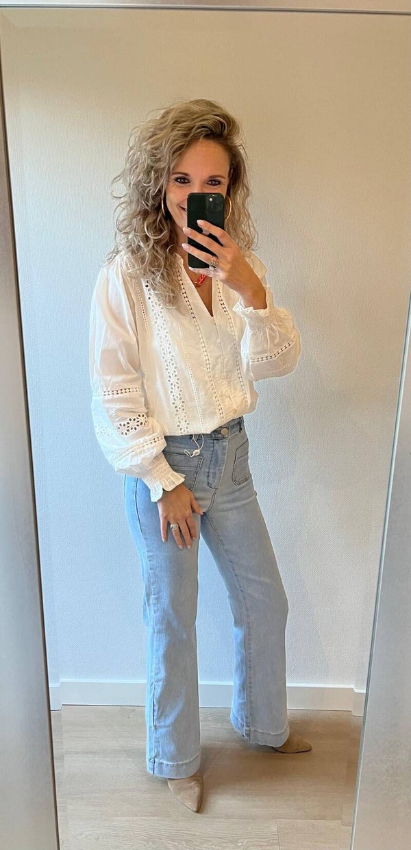 Deze mooie licht kleurige jeans is de perfecte keuze voor dit seizoen! Ideaal om nu te dragen, maar ook perfect voor het voorjaar. De lichte kleur maakt het makkelijk te combineren met lichte tinten voor een zorgeloze en stijlvolle look. Een veelzijdige must-have voor je garderobe!