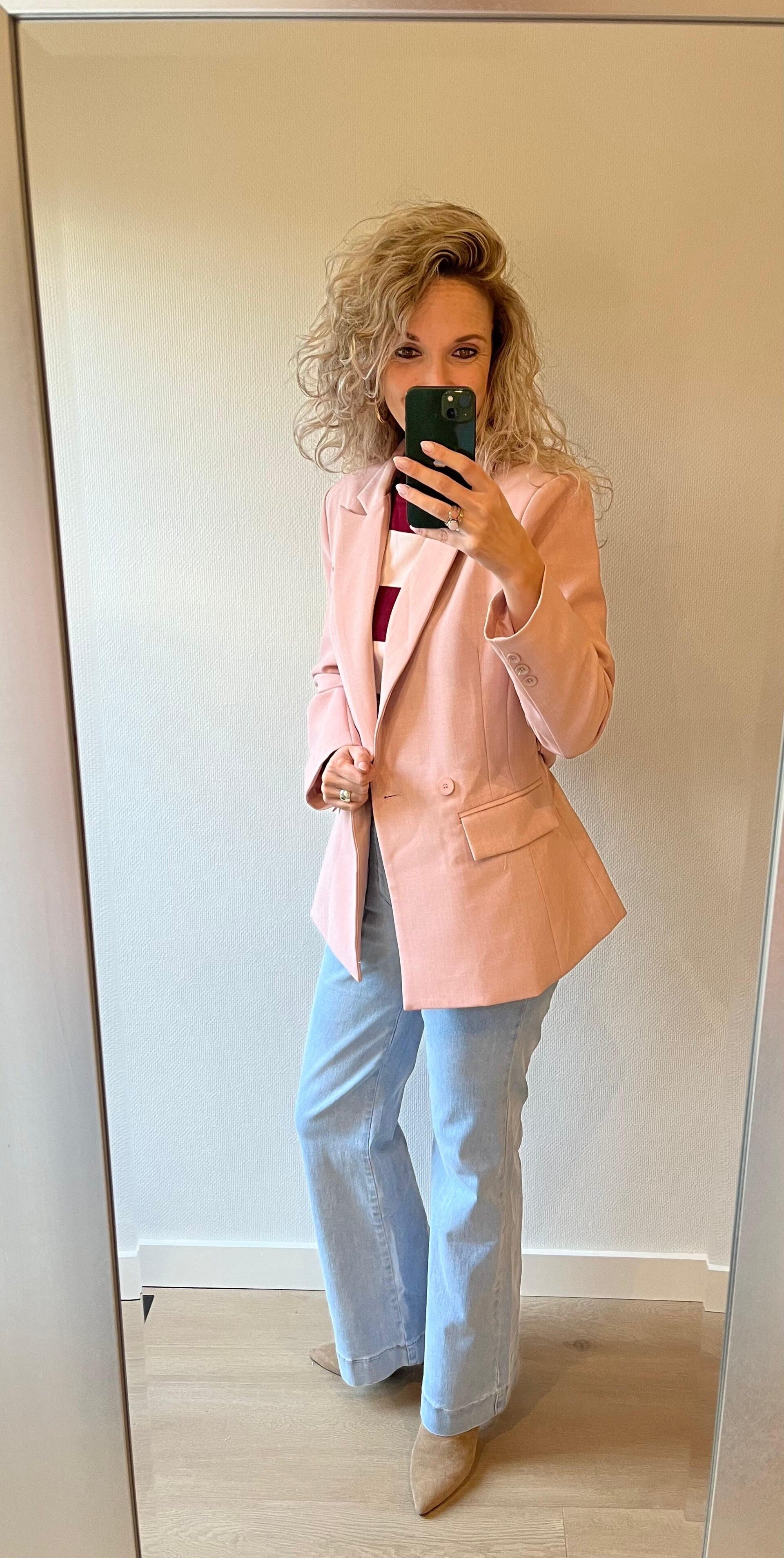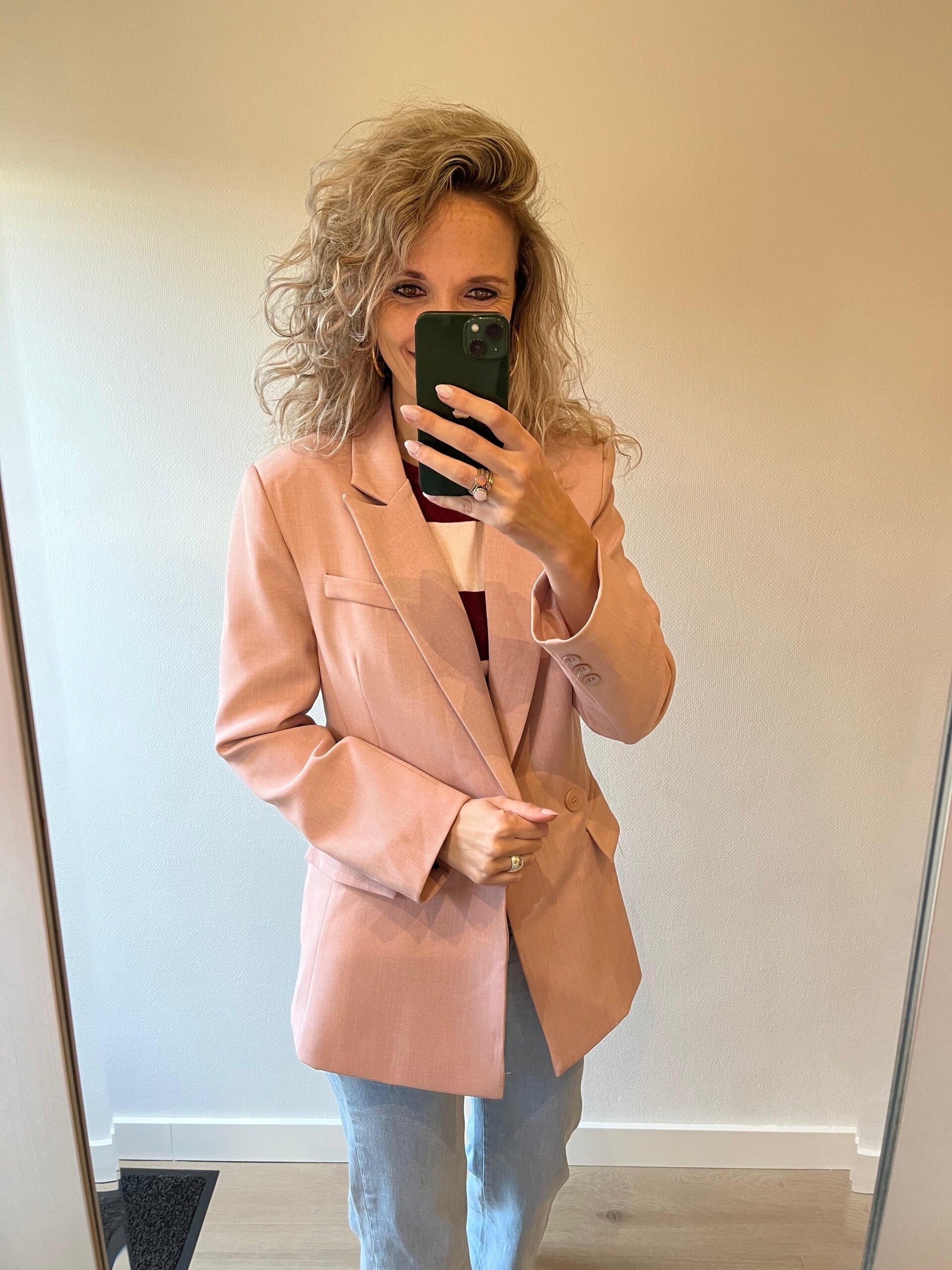 Ons model draagt haar eigen maat, maat S/36 en is 1.73 cm
