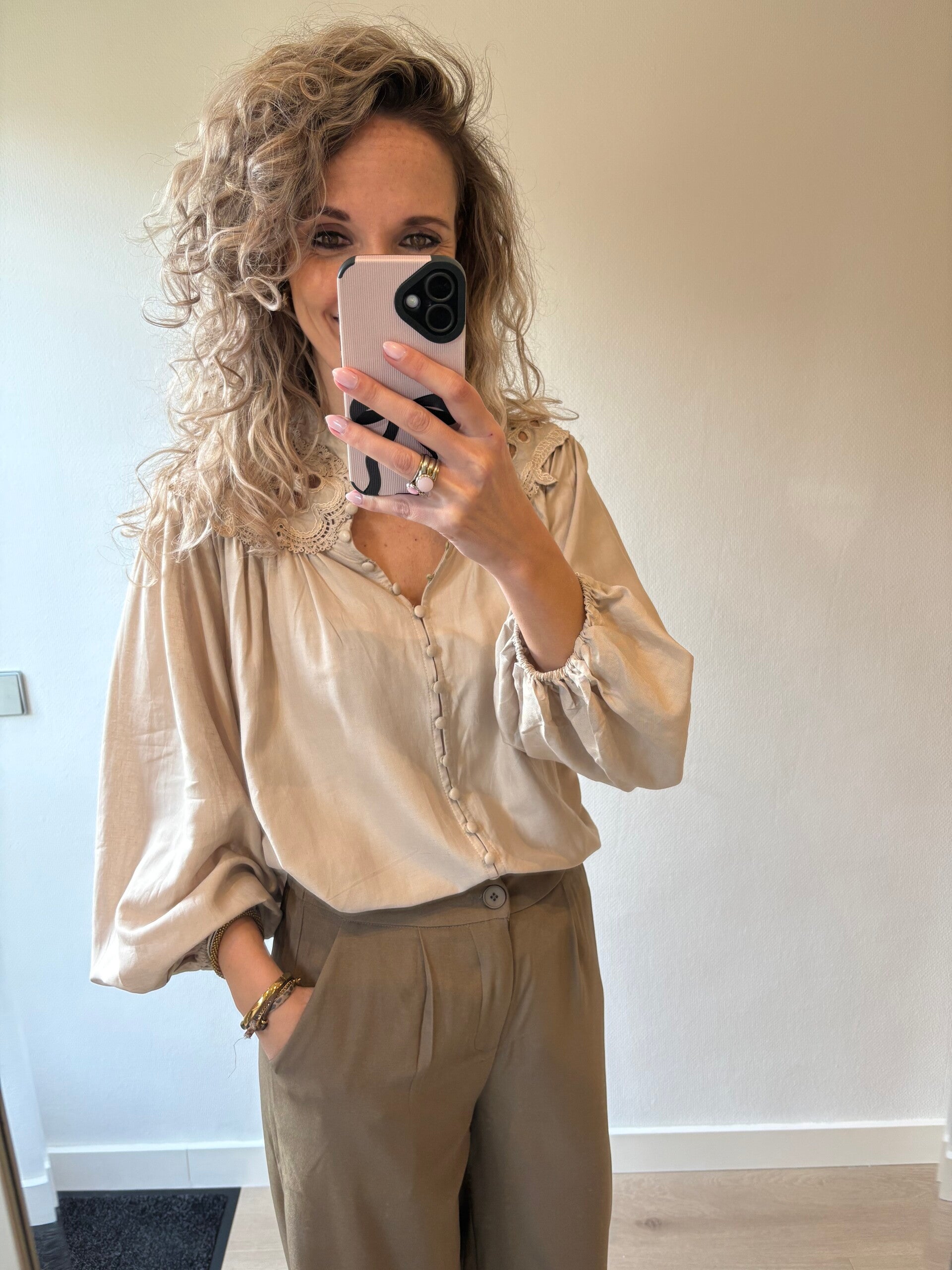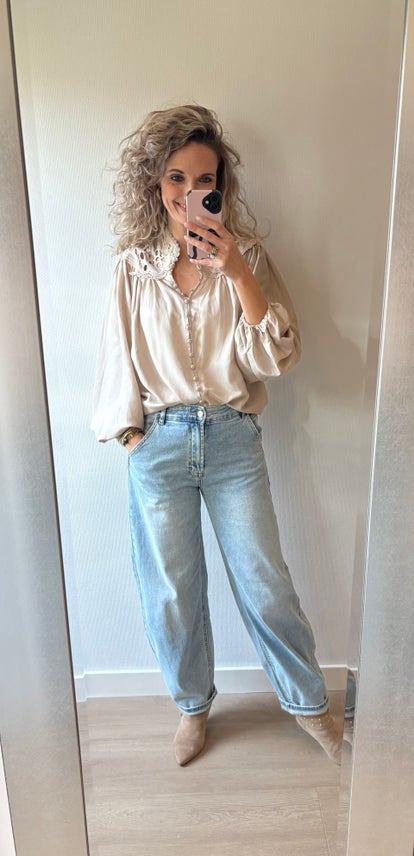 Deze blouse is mooi voor speciale gelegenheden maar ook zeer zeker leuk om op een jeans te dragen! De knoopjes zijn ook mooi gestoffeerd. Ons model draagt haar eigen maat, maat S/M