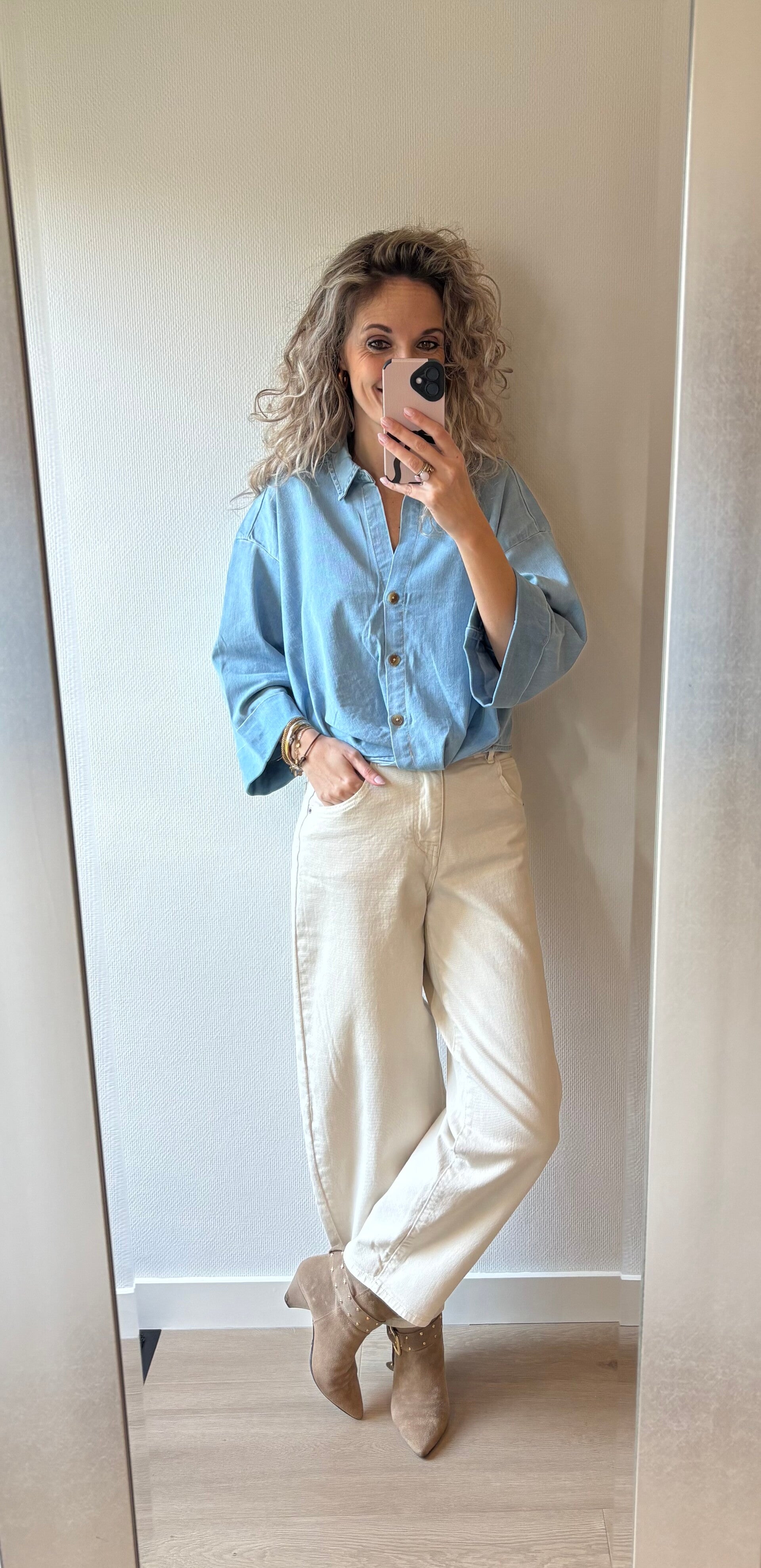 Gave jeans van het merk Queen Hearts. Mooie zand kleurige wassing. Ons model draagt haar eigen maat, bij twijfel tussen twee maten adviseren wij de maat groter te nemen.
