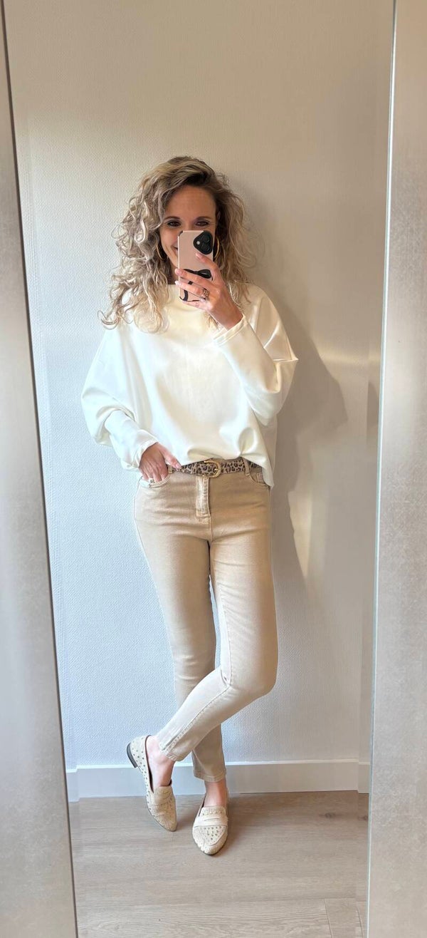 De skinny jeans komt weer terug in het mode beeld. Hoe leuk is de jeans dan in deze mooie zand kleur! De jeans bevat stretch en valt op maat
