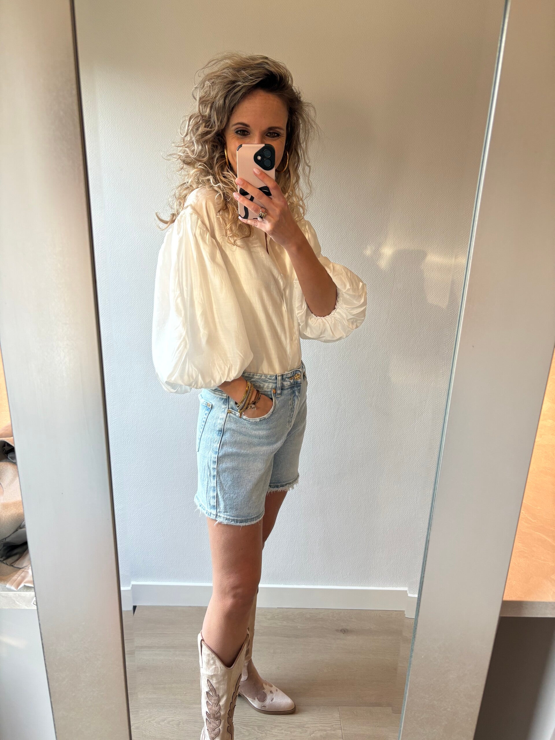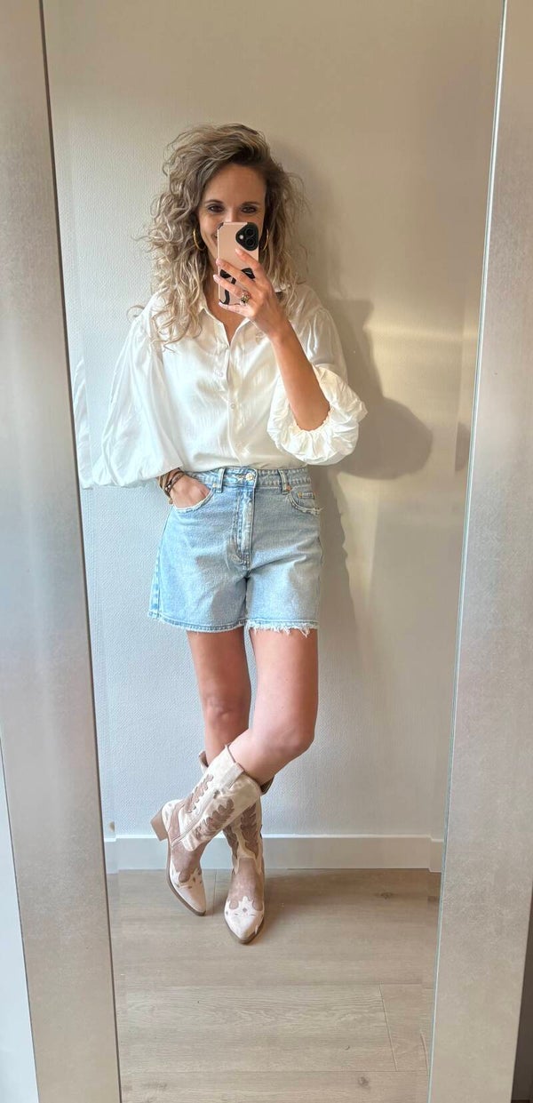 Deze mooie blouse met ballon mouw is natuurlijk perfect voor het voorjaar en zomer. Leuk op een shortje maar ook zeker op een jeans. Het blousje valt op maat!