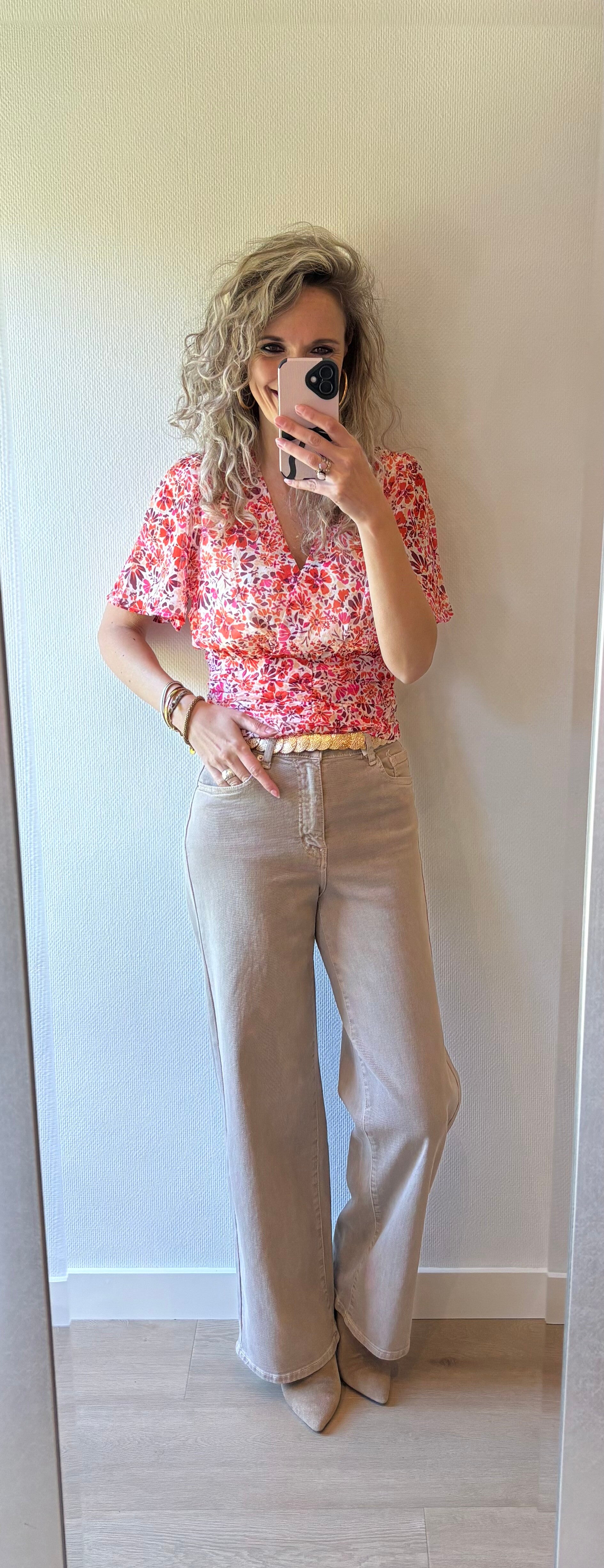 Deze fijne jeans bevat stretch. Heerlijk in dragen en valt goed op maat. Ons model draagt haar eigen maat, maat S