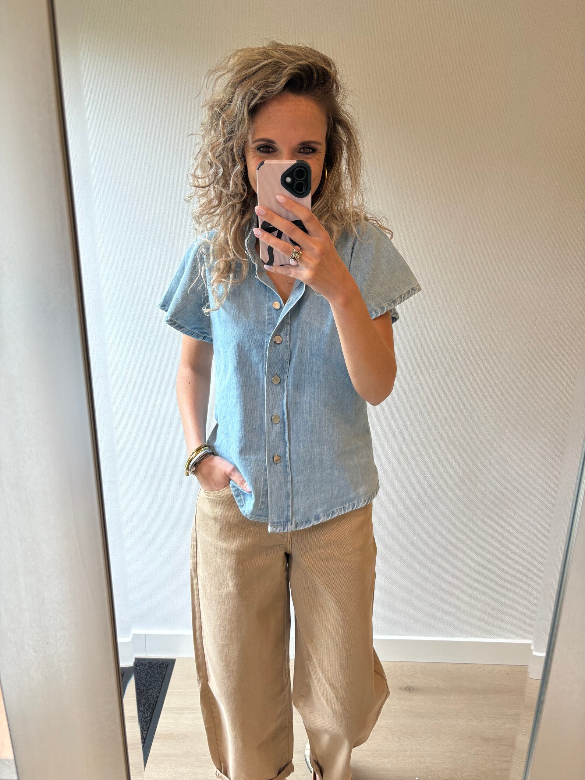 Hier is de jeans een keer omgeslagen, dat hoeft niet.