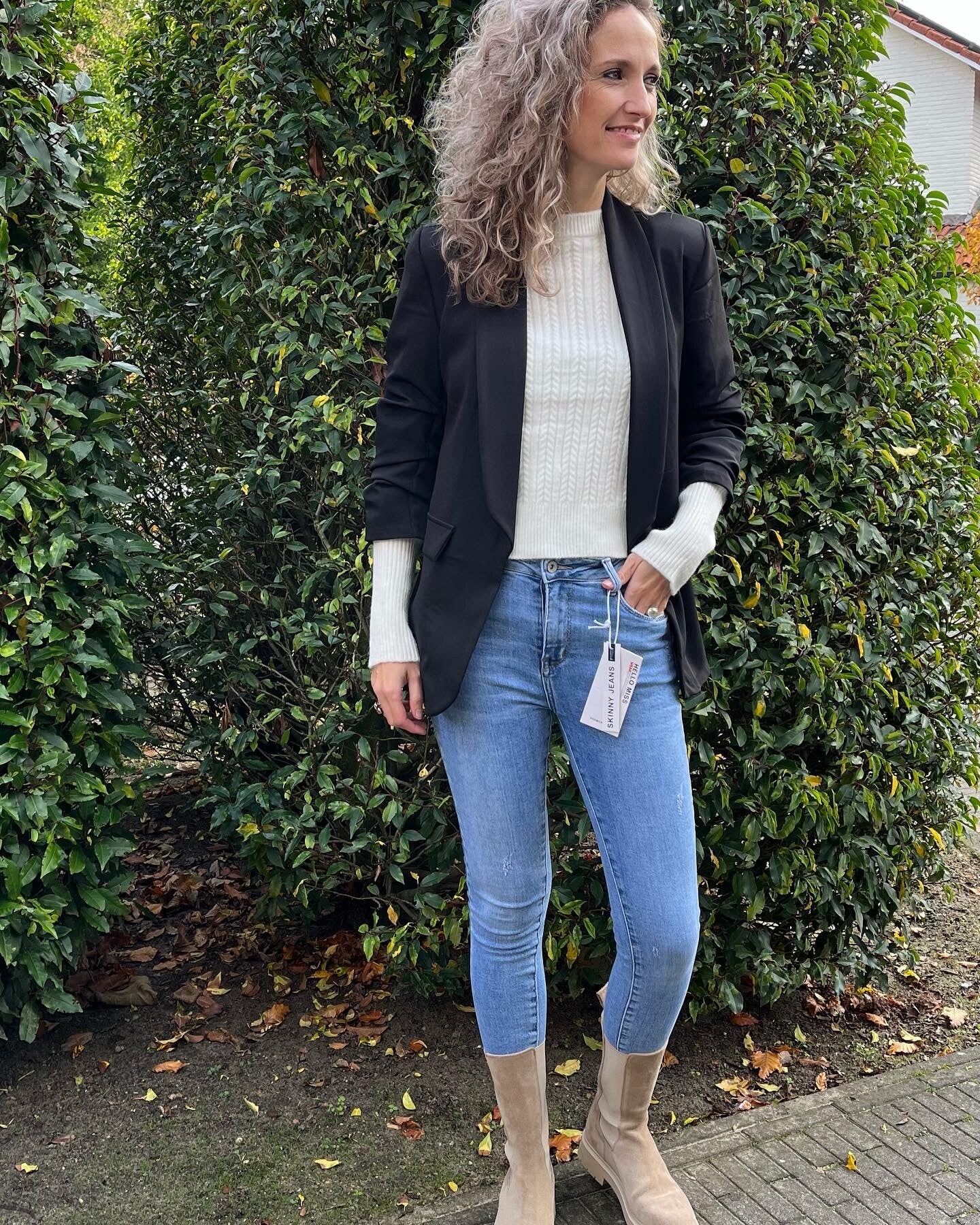 Deze stretch jeans is een hoger model en valt goed op maat.