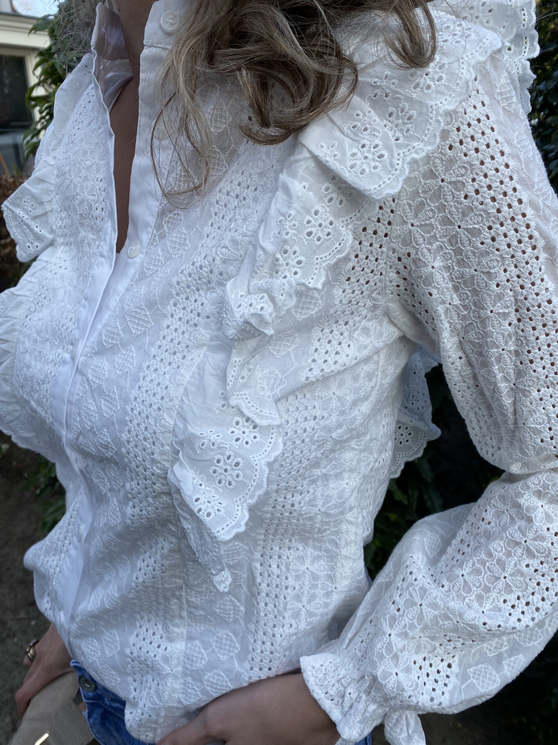 Dit leuke broderie blousje gaat in maten. Valt goed op maat