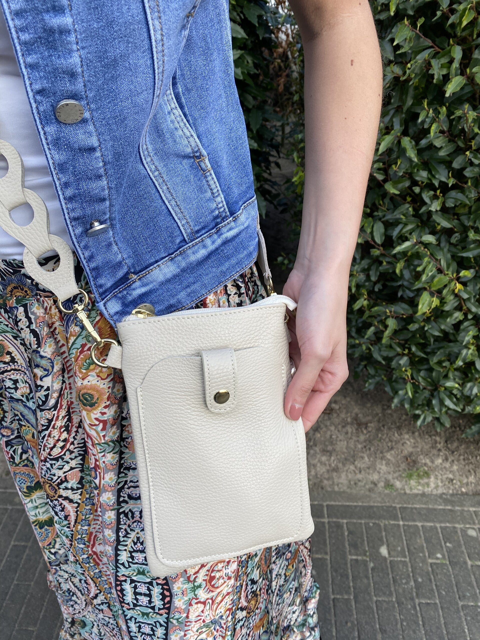 Leren telefoontas zand
