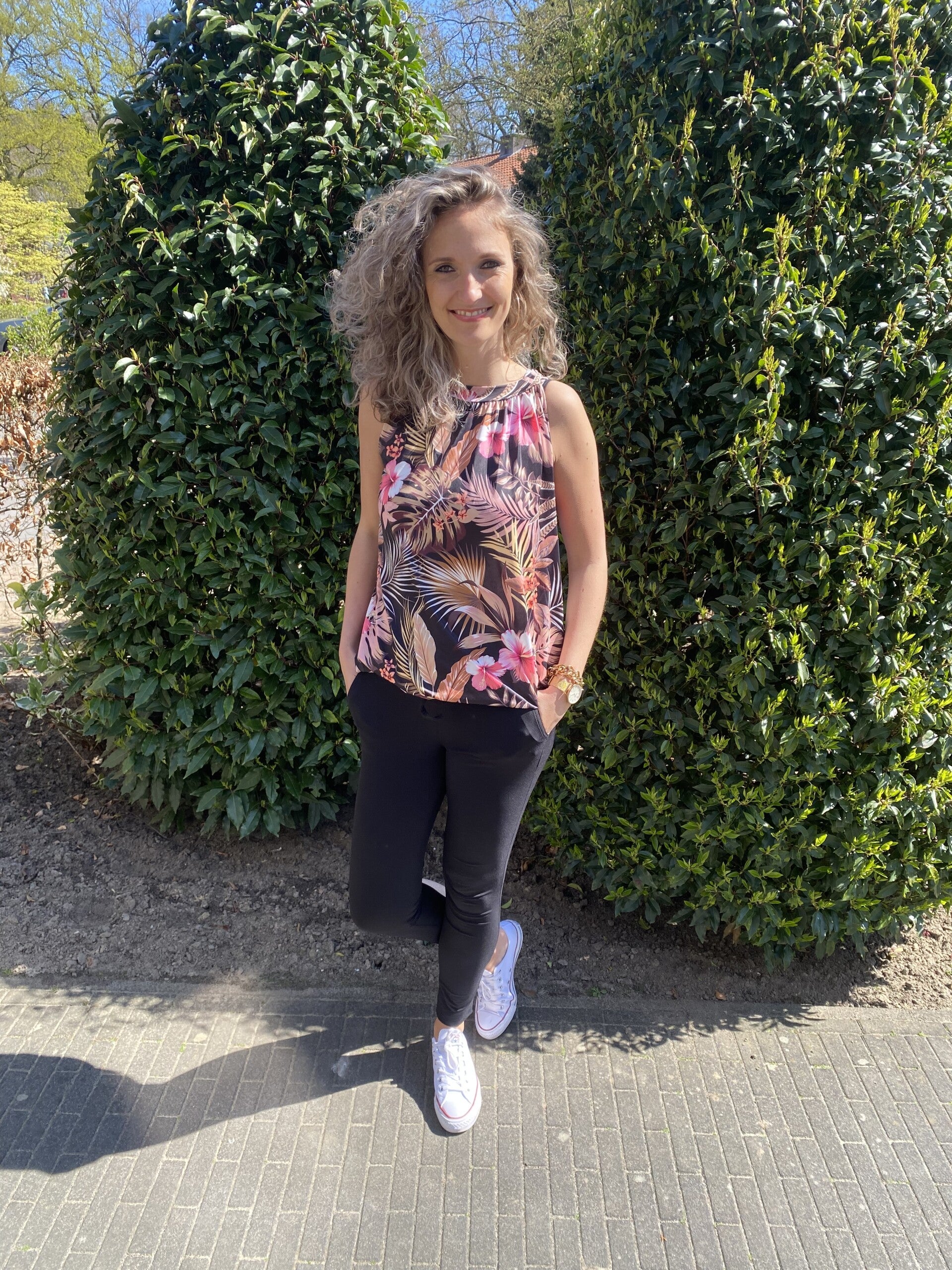 Top travel print zwart/roze