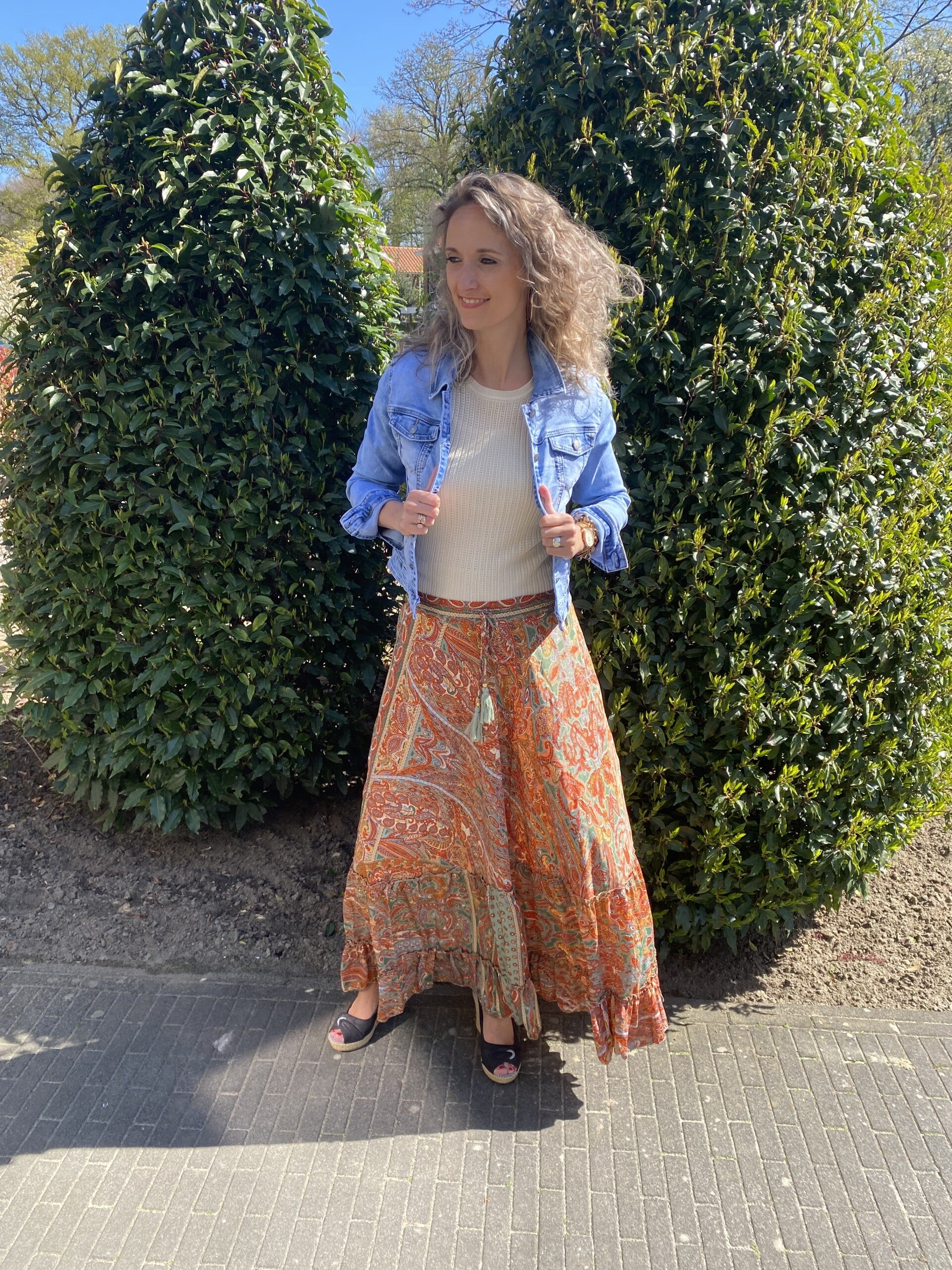 Deze print rok heeft veel kleuren in de rok waardoor het met veel kleuren gecombineerd kan worden. De rok is one size en te dragen t/m maat 42