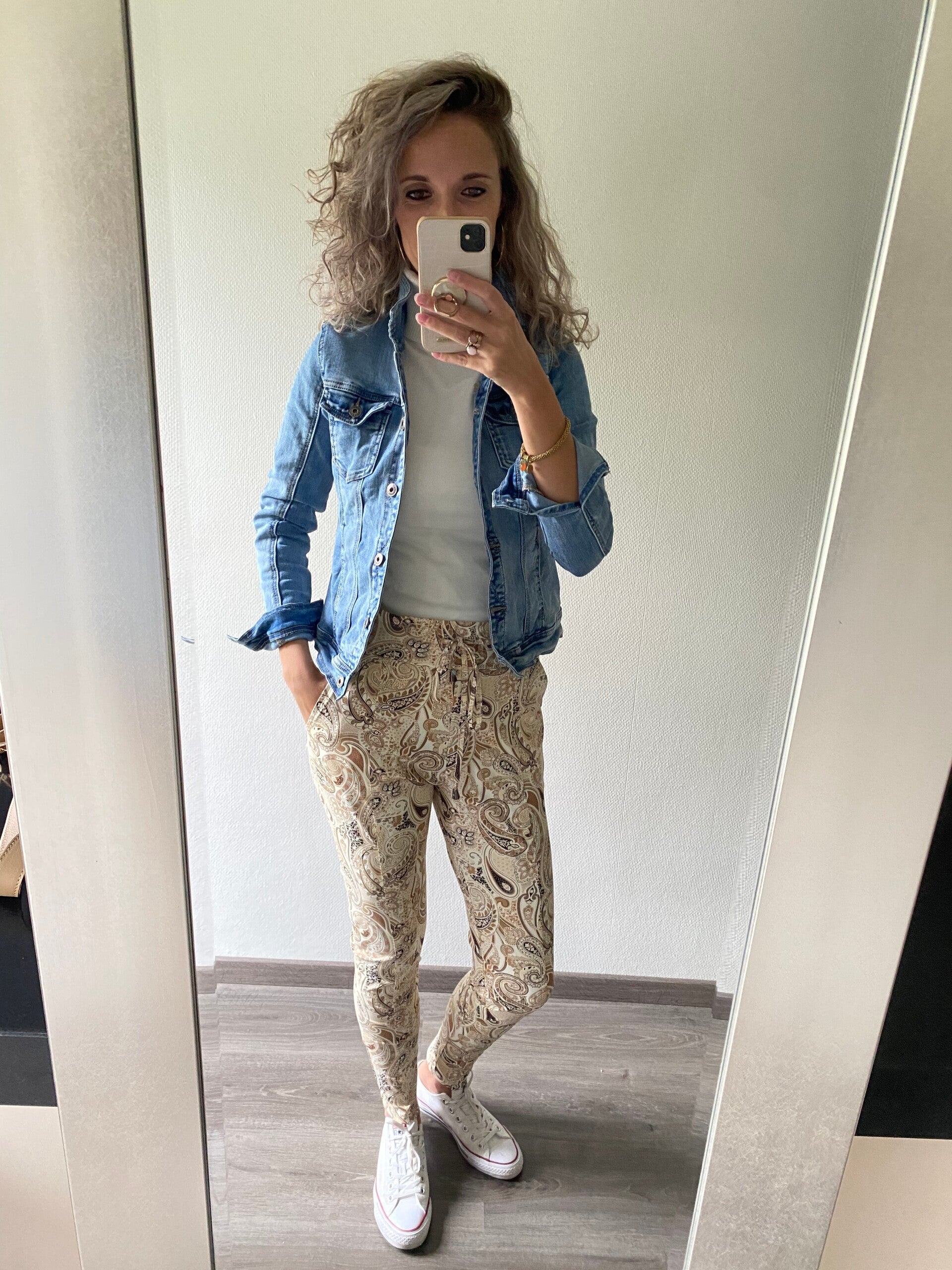 Deze heerlijke Travel broek van het merk Mi Piace heeft een leuke paisley print en valt op maat. Trekkoord, twee zakken op de voorzijde en klepzakjes op de achterzijde. Deze broek gaat in maten.
