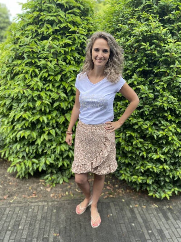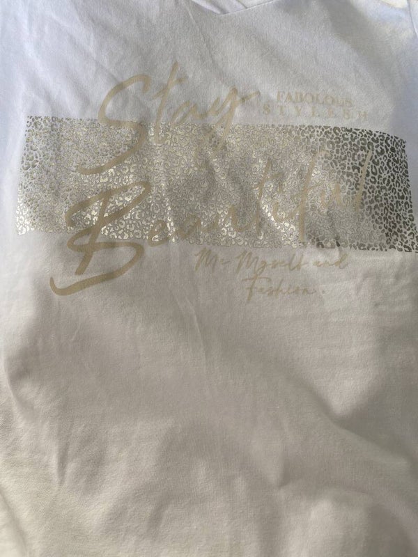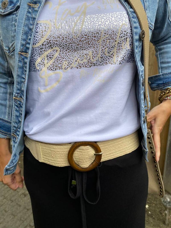Dit leuke t-shirt is door de neutrale kleur overal bij te combineren. De maat S/M is voor beide maten geschikt.