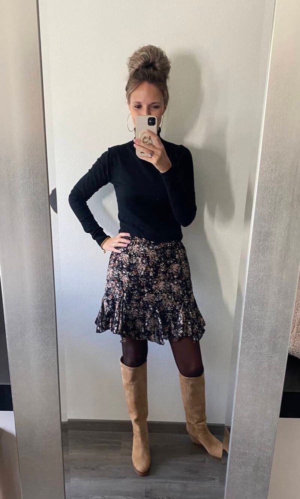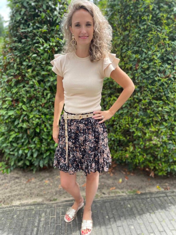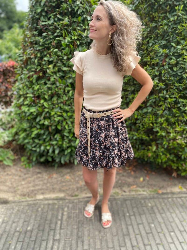 Dit leuke bloemetjes rokje heeft een onder rokje waardoor de rok niet doorschijnt. De rok gaat in de maten S M L