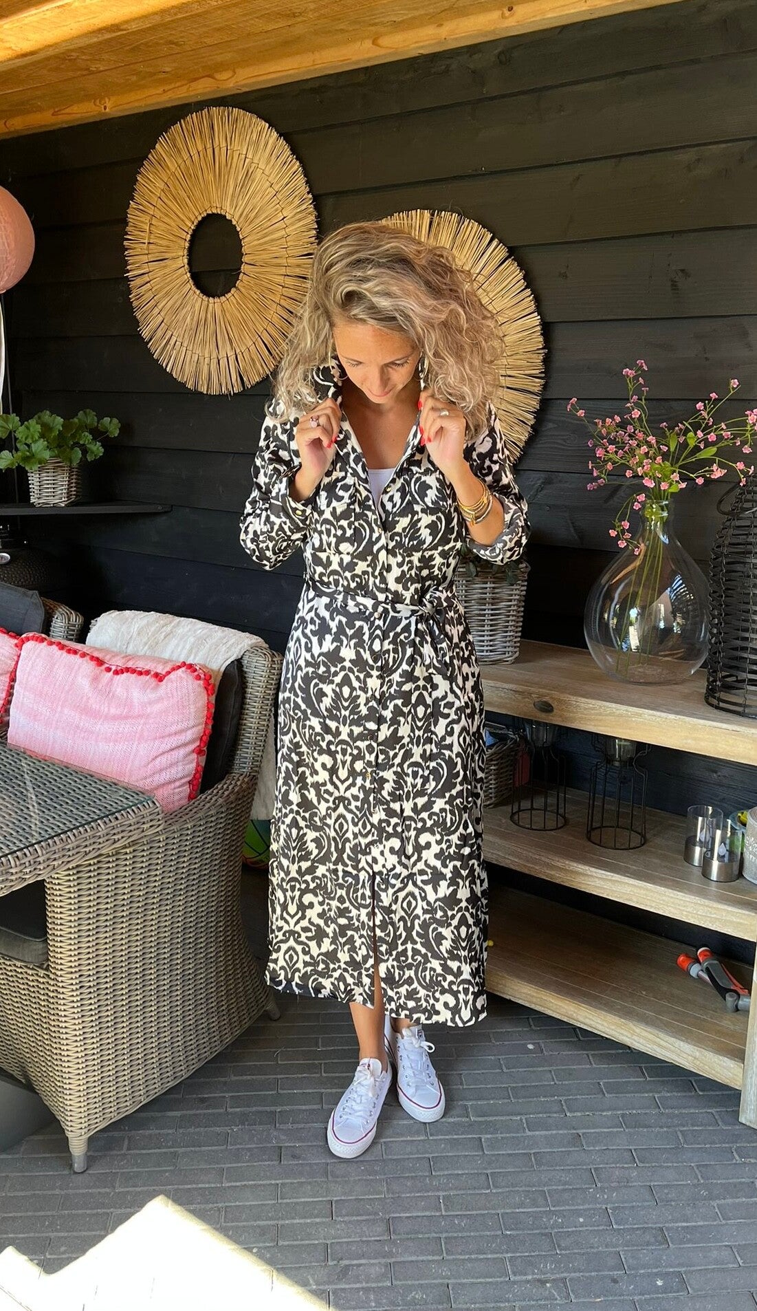 Wat een plaatje van een jurkje. Leuk om het hele jaar te dragen. In de zomer met een slipper en in het najaar met een lange laars. Er zit een los strik ceintuur bij. De jurk gaat in maten en valt op maat.