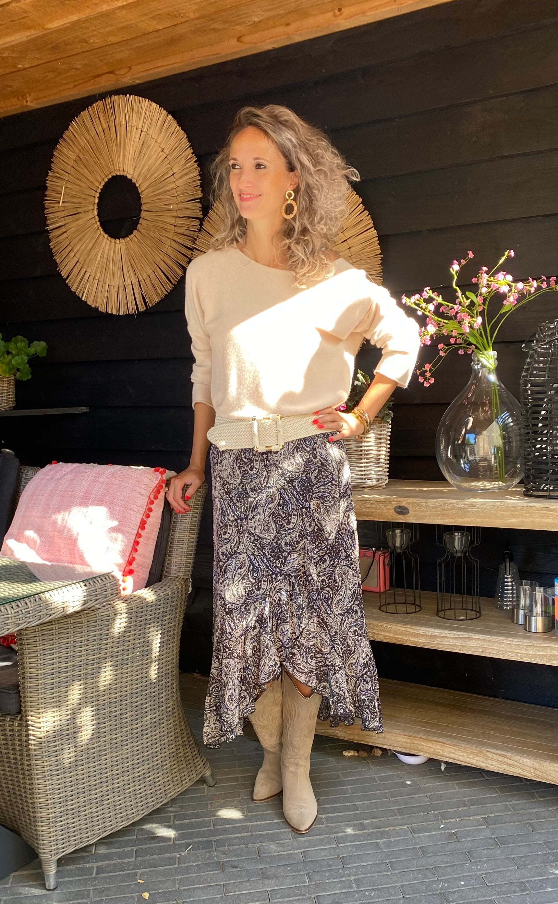 Deze mooie zand trui is one size en te dragen t/m maat 44