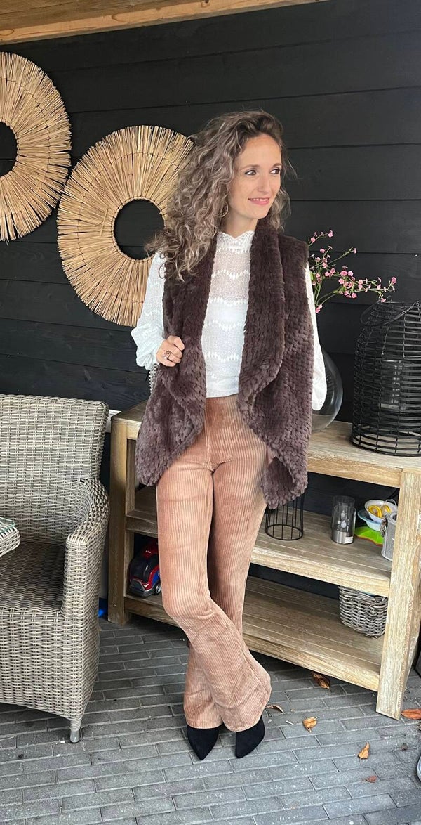 De trend van nu. Een gilet/ bodywarmer in teddy of bont. Een echte eyecatcher en onmisbaar deze winter in jouw gaderobe. Deze topper hebben wij in 3 kleuren. Het is one size en te dragen t/m maat 42.