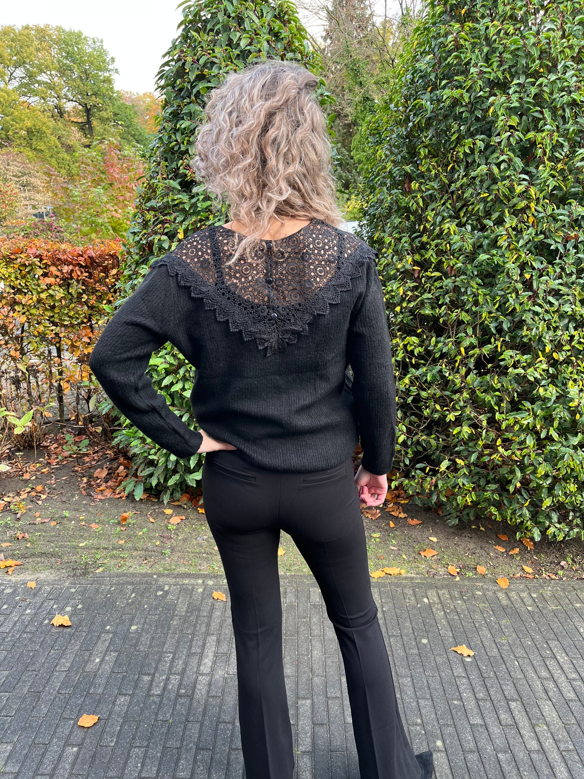 Deze flair broek sluit aan de zijkant met een rits. Er zit goed stretch in de broek en is een hoog model. De broek valt op maat.