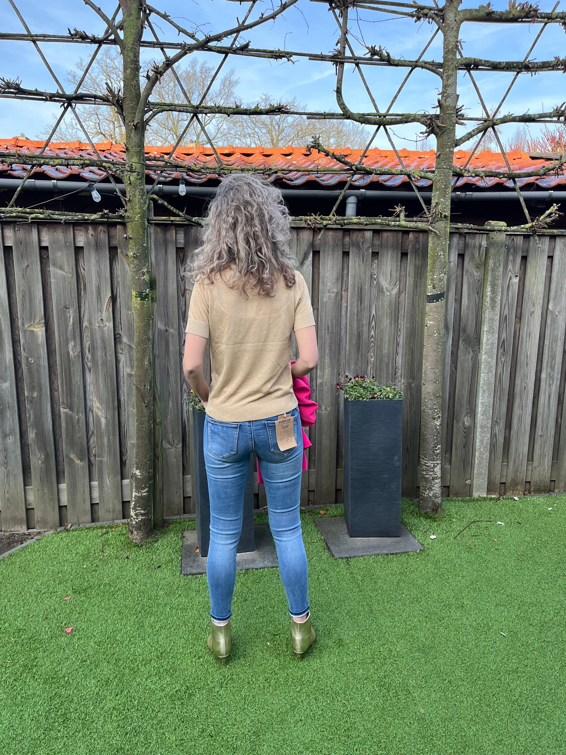 Ons model draagt maat S, haar eigen maat