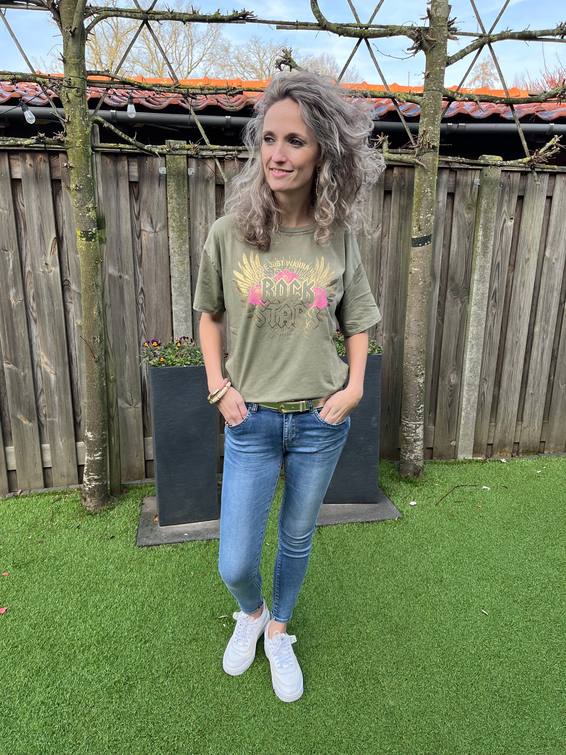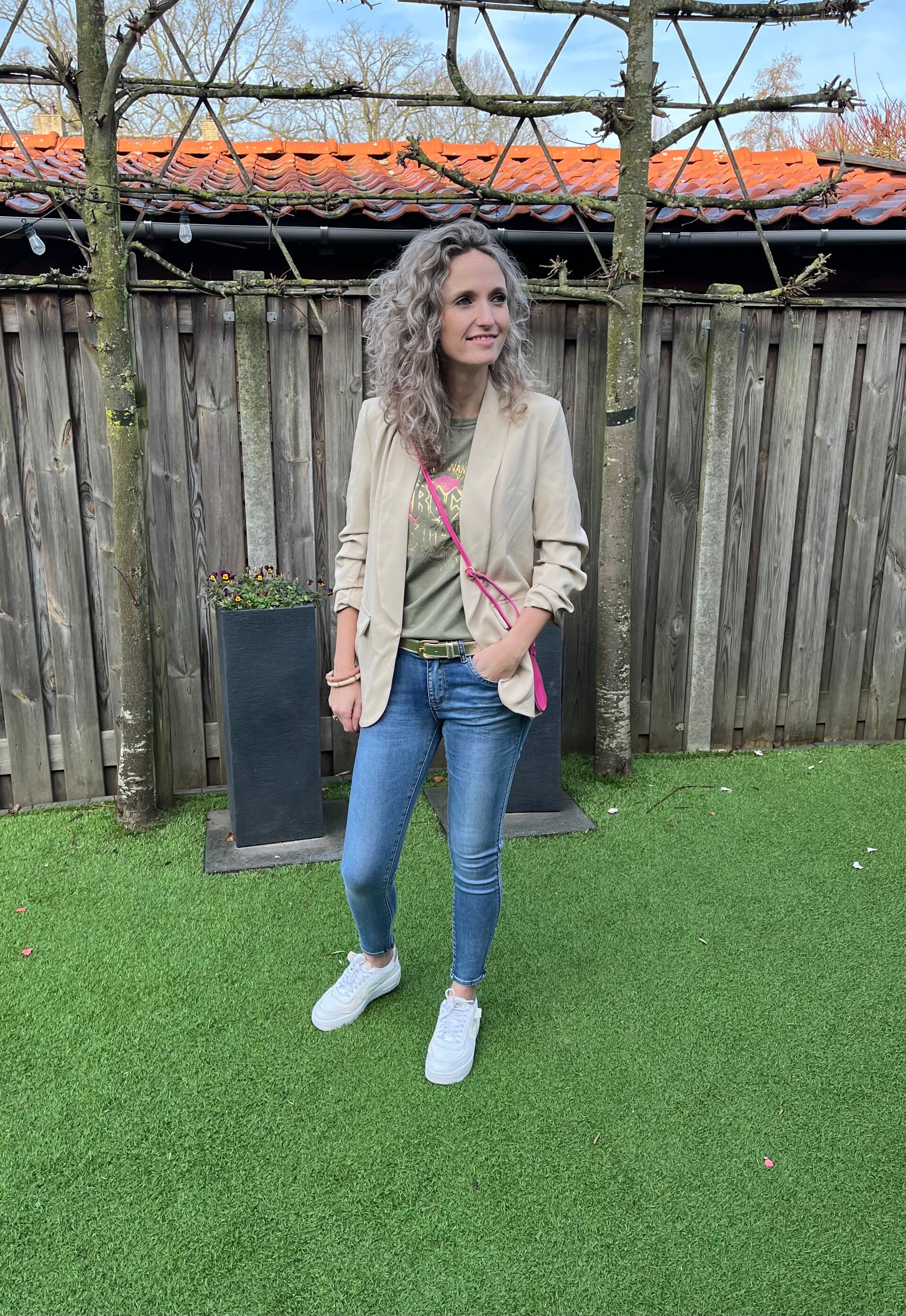 Hier hebben wij het gecombineerd met de fijne Toxik jeans en een leren goud kleurige riem.